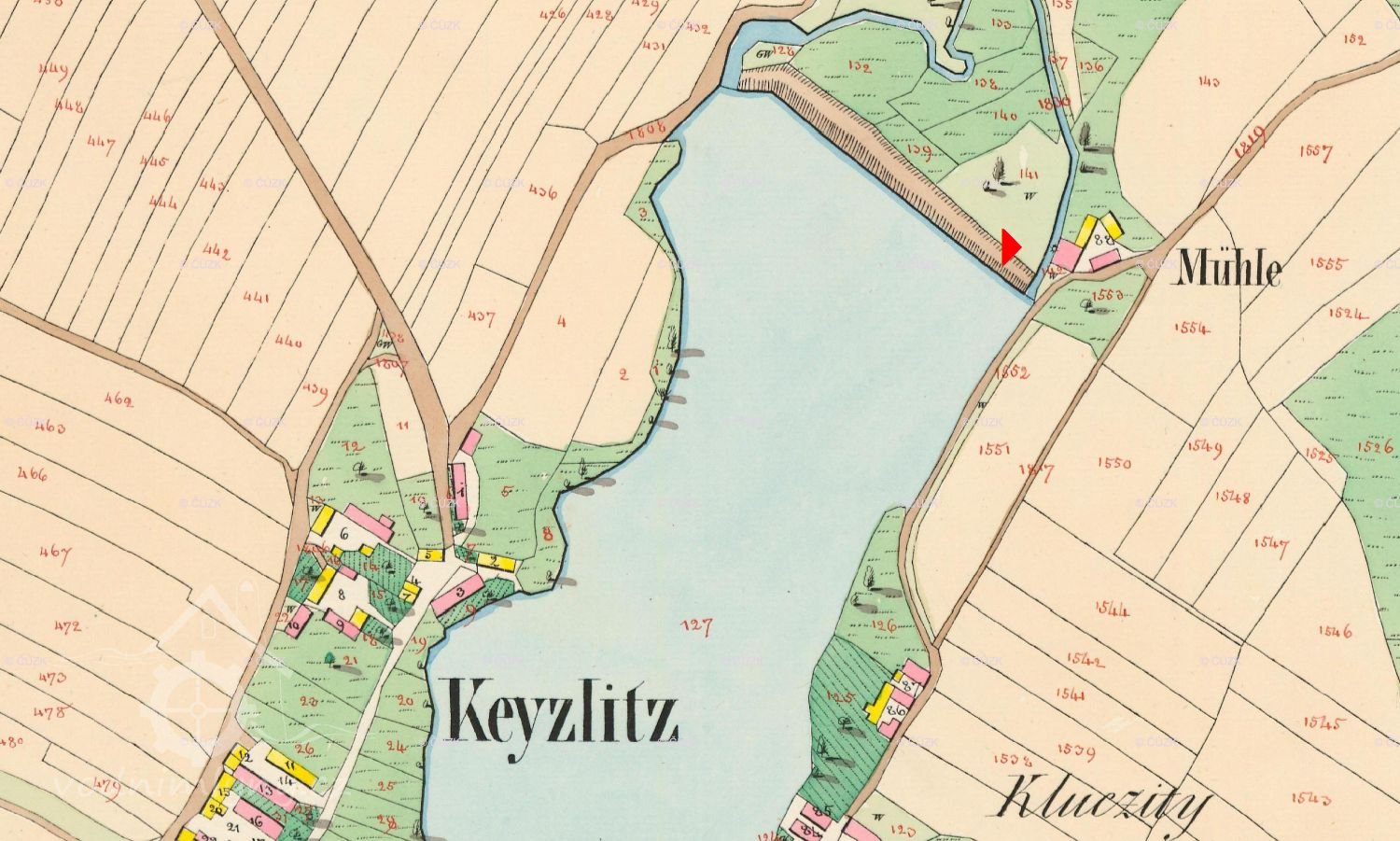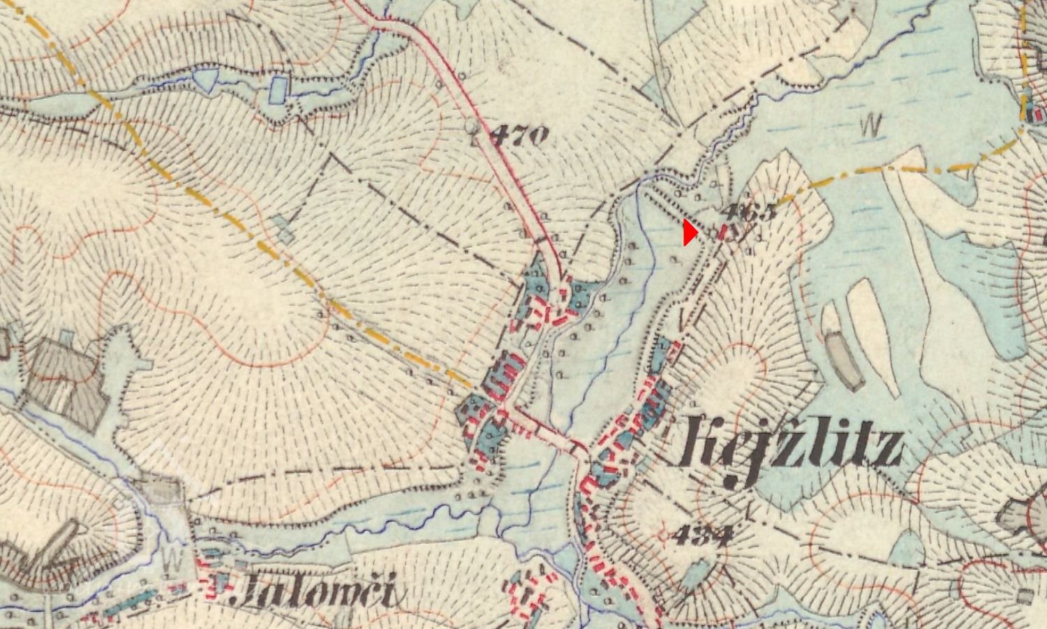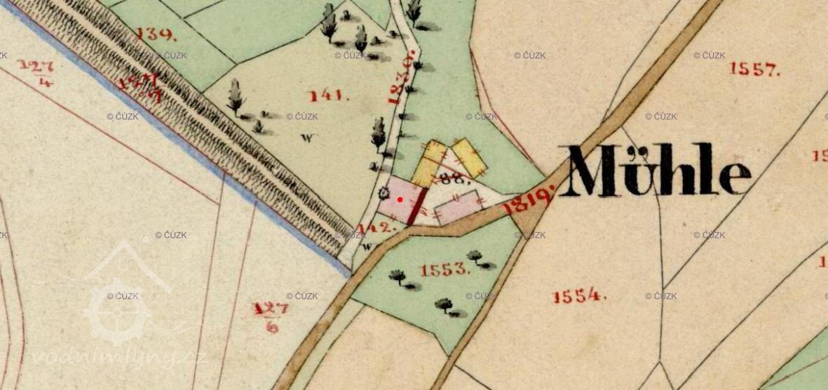 Mlýn uveden na mapě I. vojenského mapování.