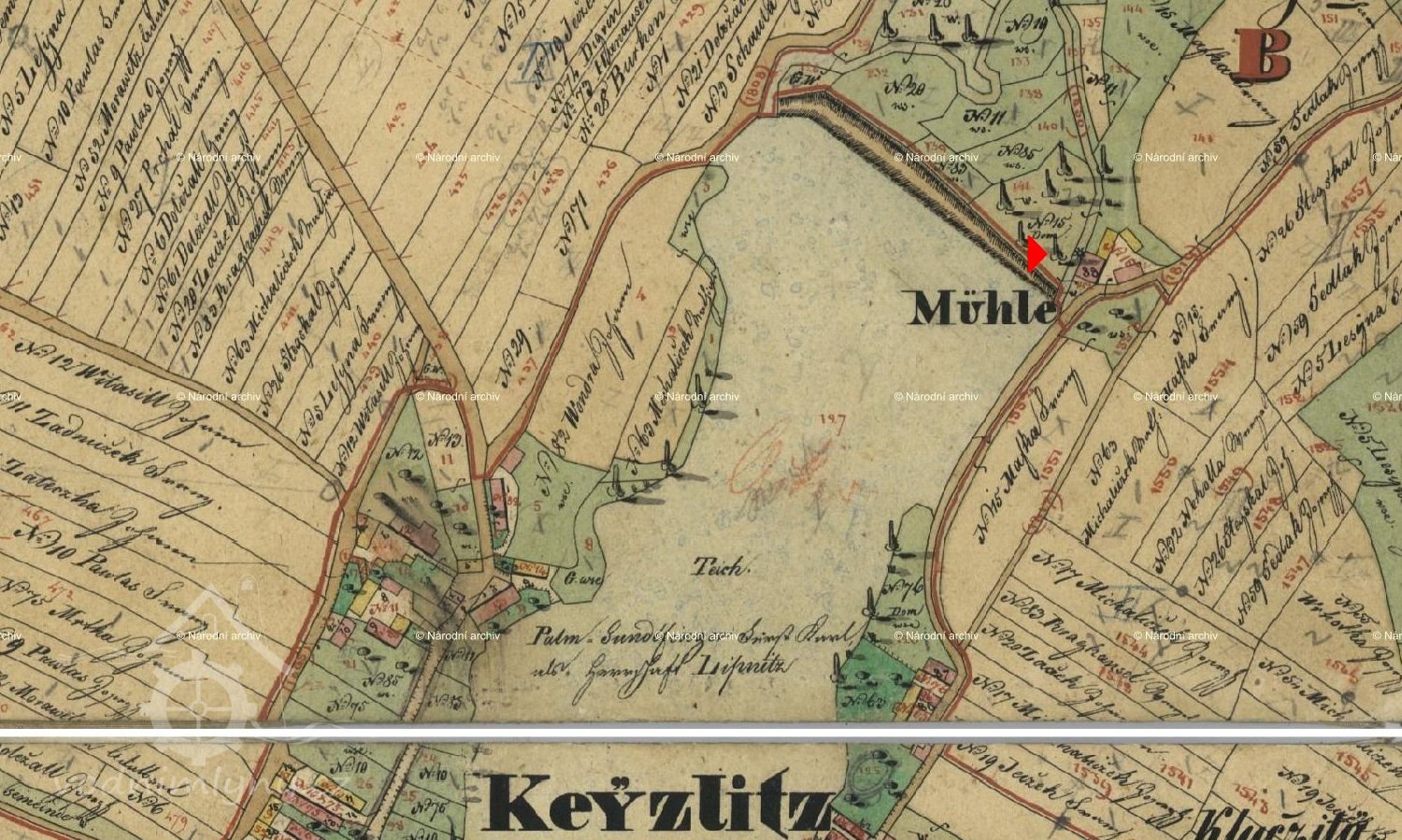Bezprostředně k mlýnu, který je na všech mapách se nedochovaly žádné doklady. Za to o likvidaci Kejžlického rybníka, ze kterého dostával mlýn vodu víme dost. Spor o vodu z rybníka trval více jak padesát let a poslední z řady mlynářů Mafků prodal mlýn lipnickému panství, kterému rybník patřil. Kdy k tomu bylo nevíme, ale mlýn se nedostal do seznamu vodních děl z r.1932. Dnes najdeme v místech, kde mlýn stával bujnou vegetaci a místní ČOV.