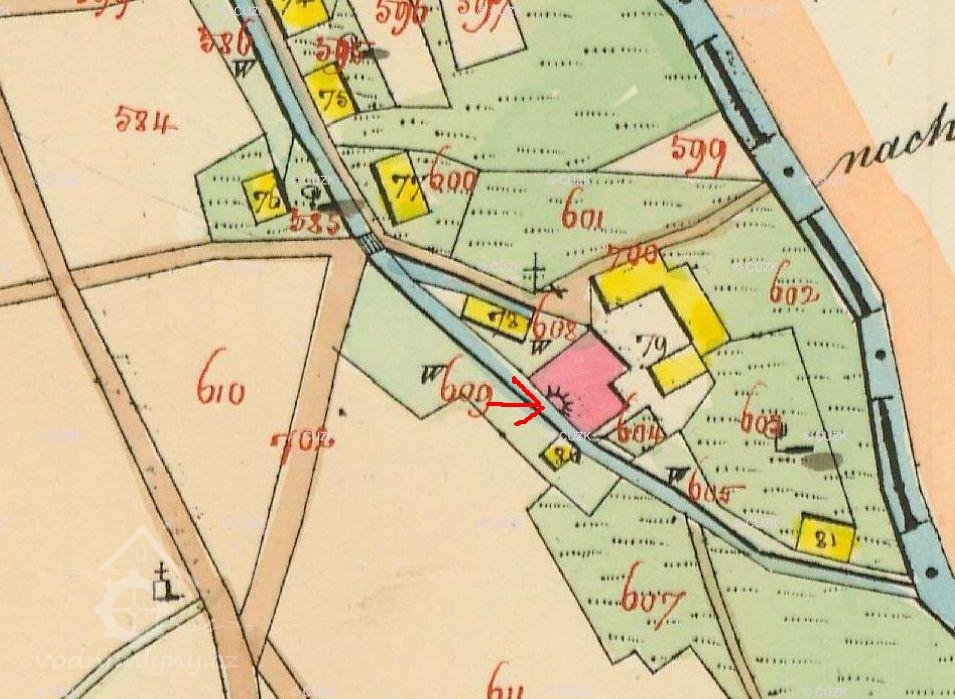 Popis1930: 1 kolo na svrchní vodu, hltnost 0,233 m3/s, spád 5 m, výkon 9,3 HP