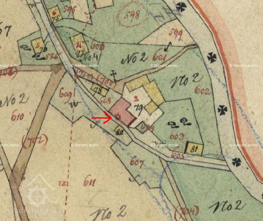 Na ortofotomapě z 50. let 20. století je ještě viditelná obytná budova a mlýnice.