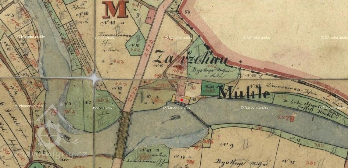 Mlýn je uveden na I. a II. vojenském mapování se značkou MM a na císařském otisku z roku 1838. Mlynářem v té době byl podle indikační skici Jan Zimmermann.