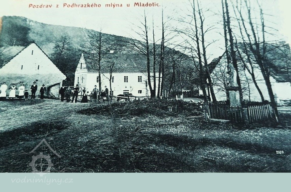 Kolem r. 1872 mlynařil na Podhrázském mlýně František Rabas (1804-1876) s manželkou Veronikou. Tehdy měl mlýn již čtyři složení a dvě pily. V té době také velká voda protrhla hráz Mladotického rybníka, který měl rozlohu přes sto hektarů, zničila mlýn a jeho části odnesla. Na rozdíl od mlýna nebyl rybník již nikdy obnoven.
