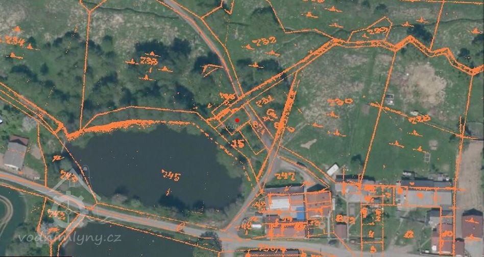 Mlýn č.32 leží pod hrází rybníčka, který patří ku mlýnu a slouží jako nádržka. V hrázi u mlýna je žlab, kterým se vede voda na vodní kolo. Žlab se hradí stvítkem 0,56 m širokým a 0,32 m vysokým. Nad tímto mlýnským rybníčkem je ještě menší rybníček patřící velkostatku Heráleckému. Oba rybníčky jsou odděleny hrází po které jde obecní cesta. V hrázi je zasazena dřevěná roura 28 cm široká a 25 cm vysoká, kterou přetéká přebytečná voda do mlýnského rybníčka.