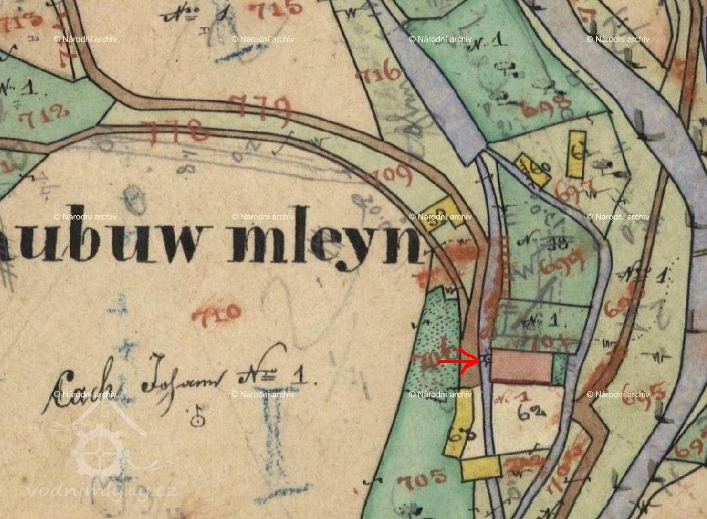V roce 1654 byl mlýn dvoukorečný a mlynářem tu byl Jan Krupička.