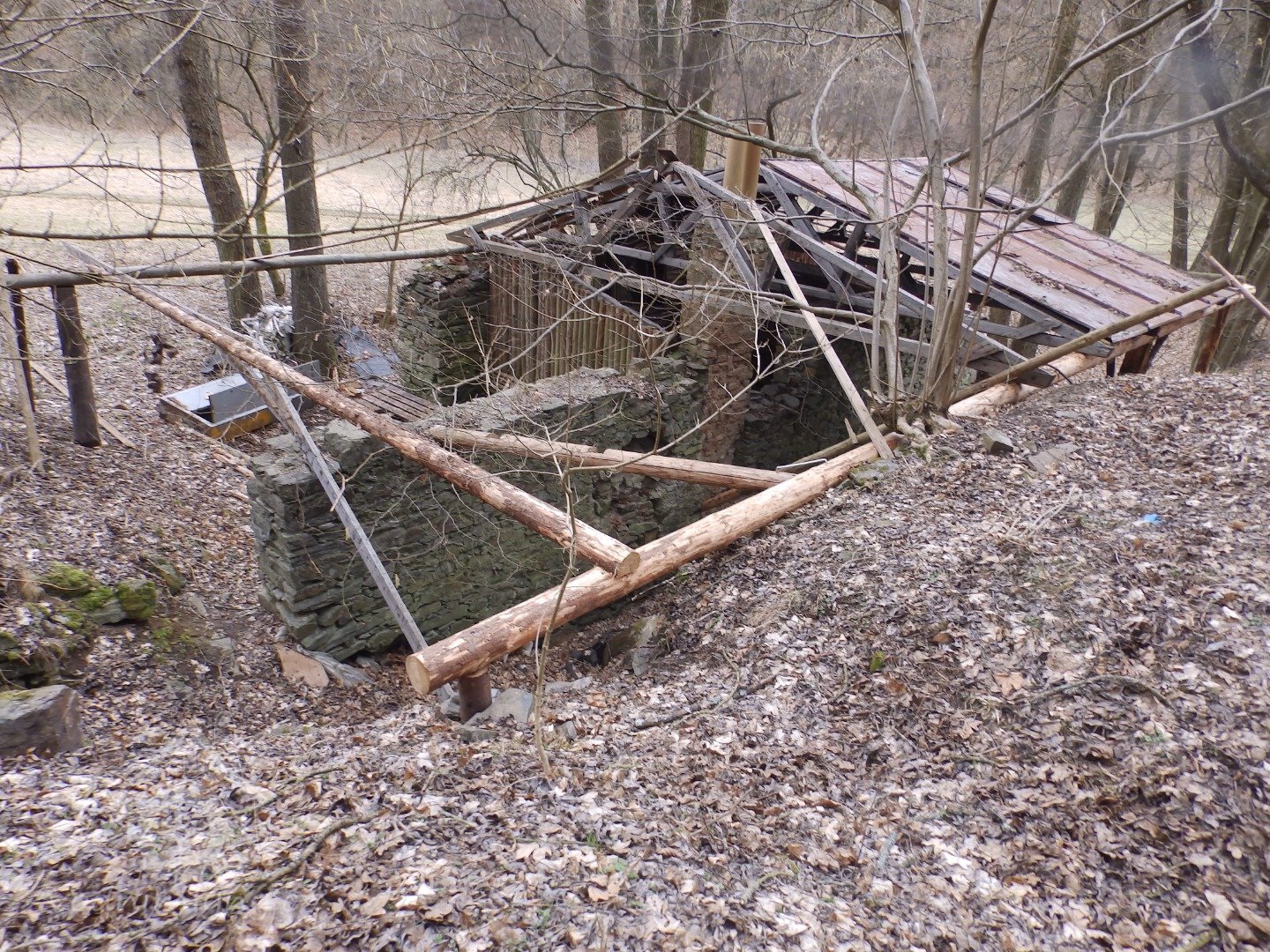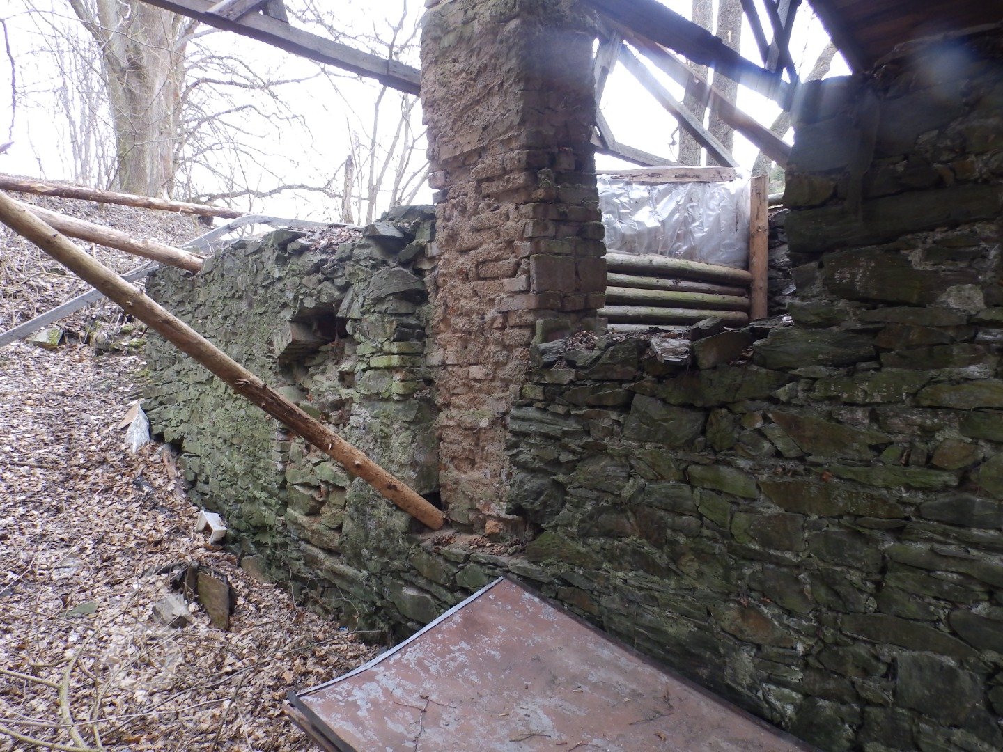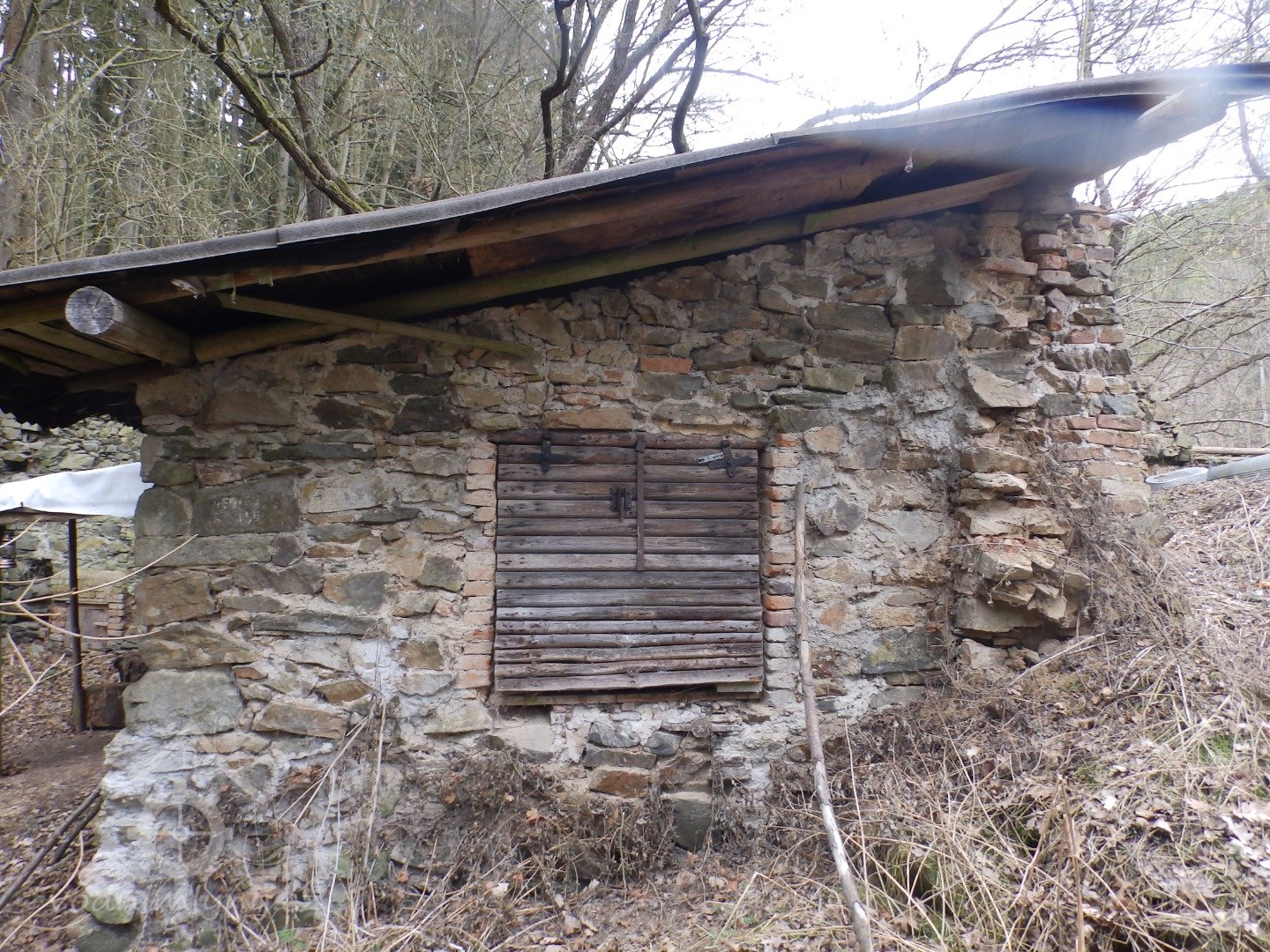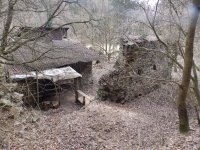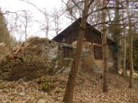 Do zřícenin vestavěna trampská chatka