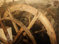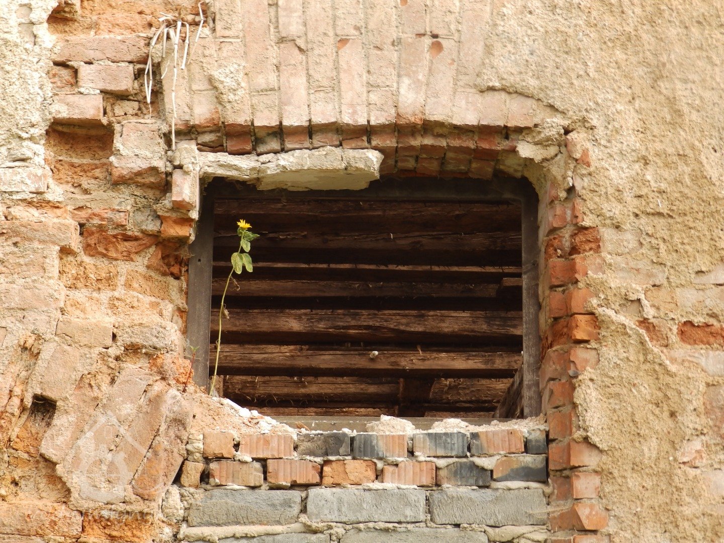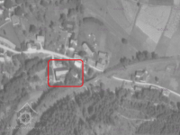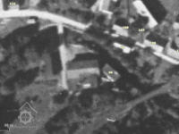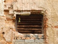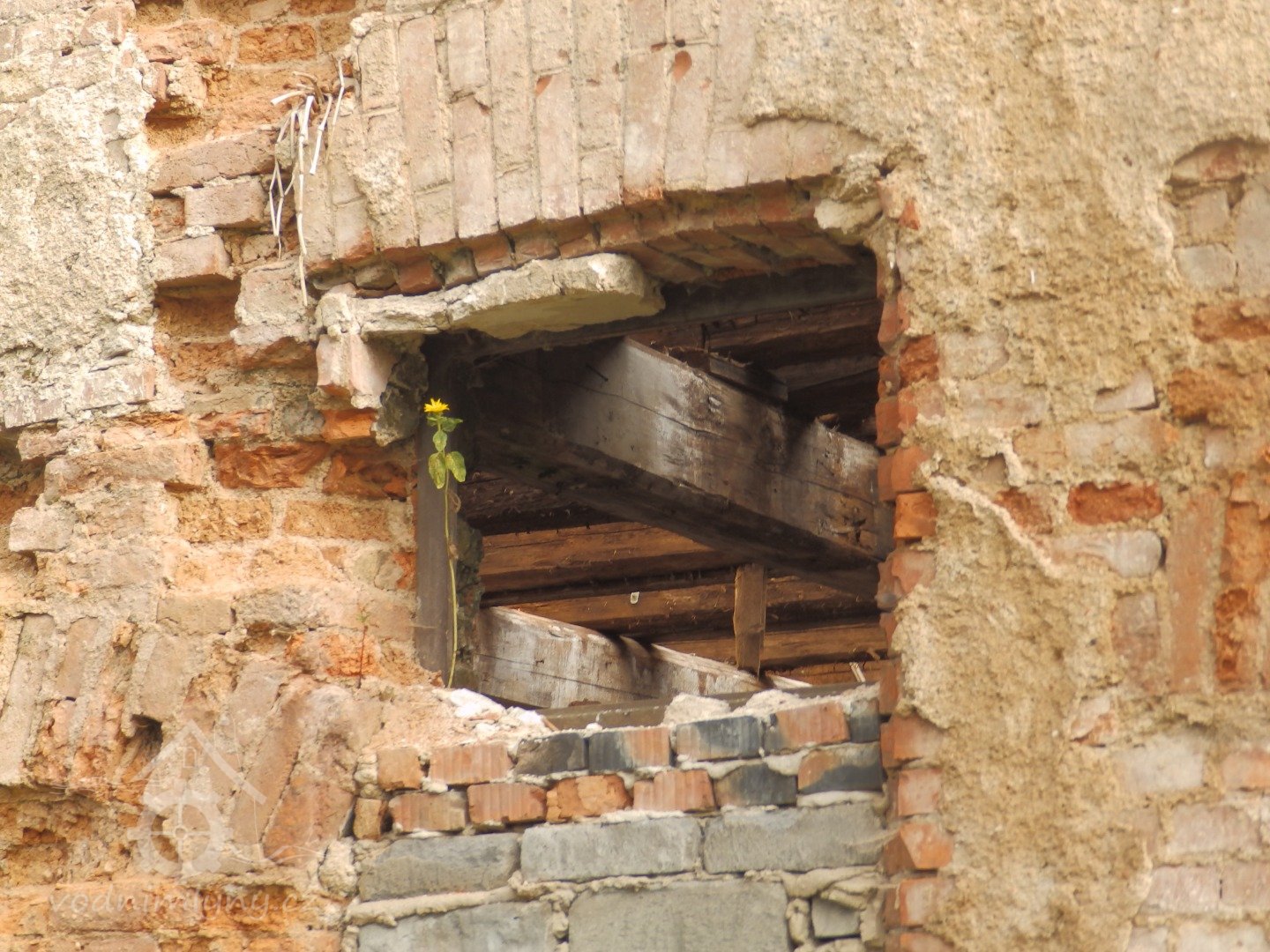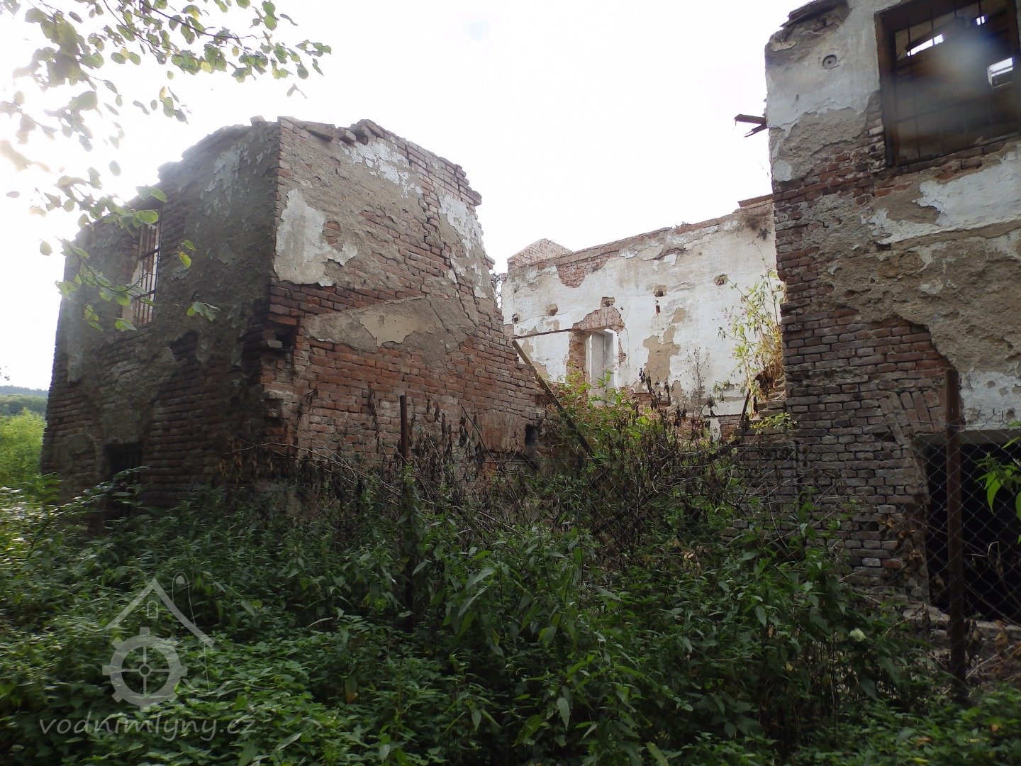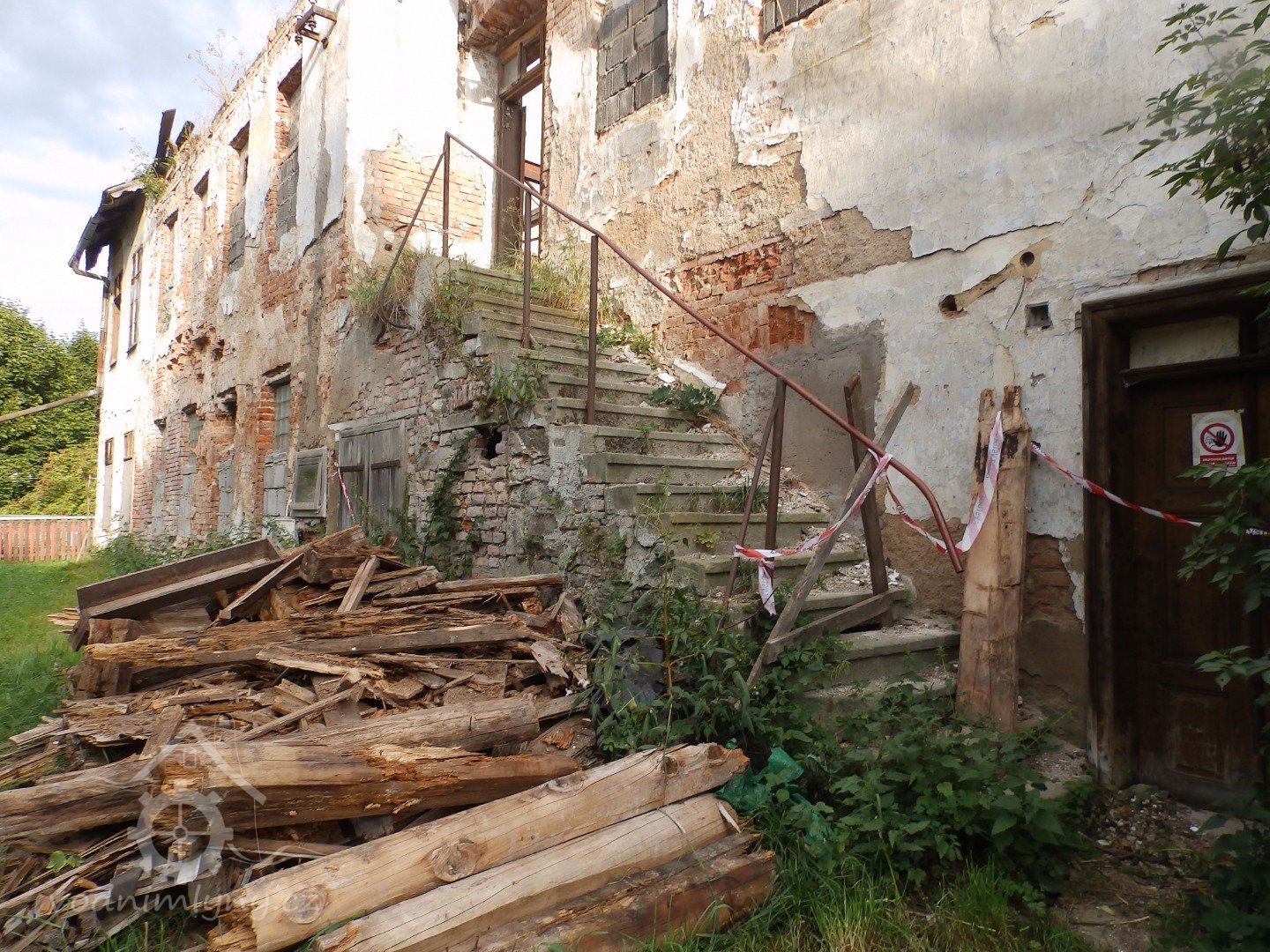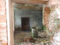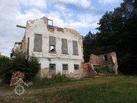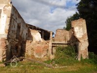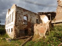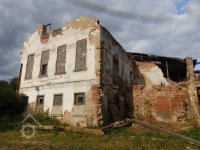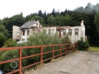 Velká obdélníková budova továrního typu, dnes zřícenina bez střechy.