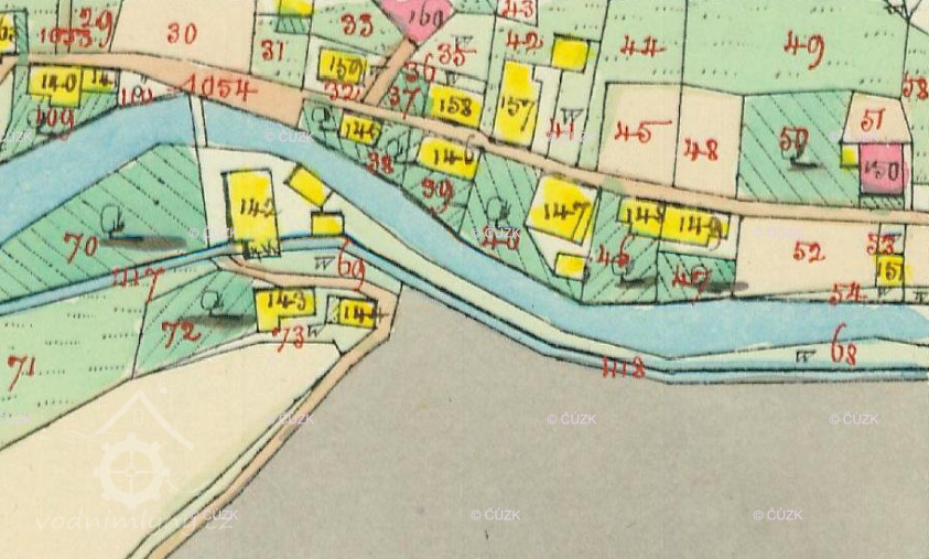 Popis1930: 2 kola na svrchní vodu, hltnost 0,236 m3/s, spád 4,4 m, výkon 9 HP