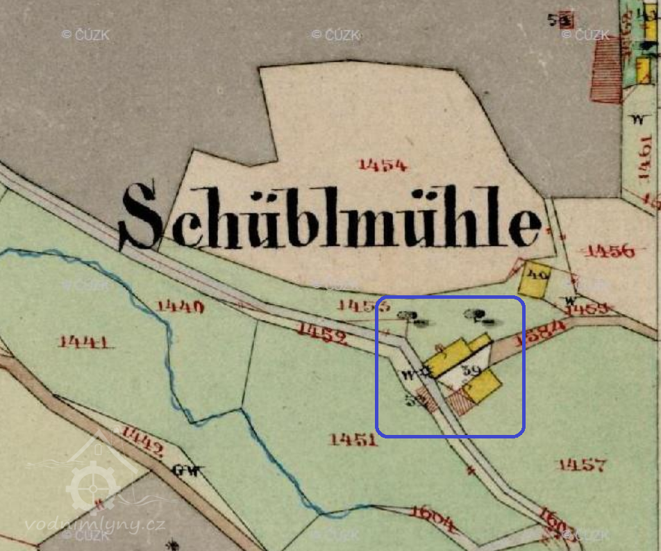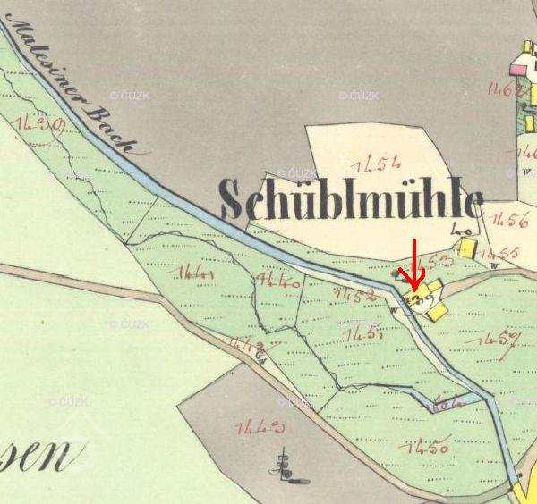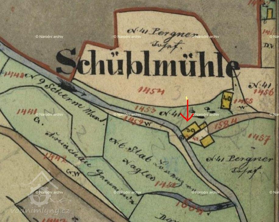 Na indikační skice z roku 1839 je jako majitel a zřejmě i mlynář na čp. 41 uváděn Josef Pergner.