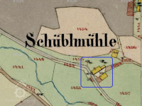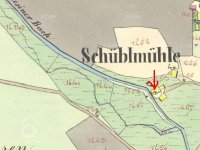 Založení Stříbrného mlýna, jinak také Schübelmühle, je uváděno před rokem 1654. V berní rule je totiž uváděn již jako pustý mlýn. Pravděpodobně byl zničen v průběhu třicetileté války.