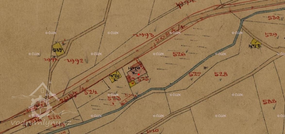 Na císařském otisku z r. 1839 ještě není mlýn zakreslen. Na indikační skice je dokreslen později.