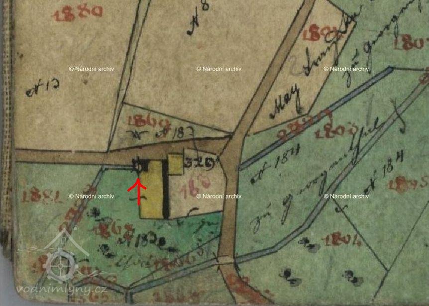 Roku 1850 se mlýn v rámci arondace katastru / vyrovnání vlastnického práva k pozemkům se sousedními obcemi/ dostal na katastr Dolního Podluží jako čp. 235. Mlel však hlavně pro jiřetínské pekaře.