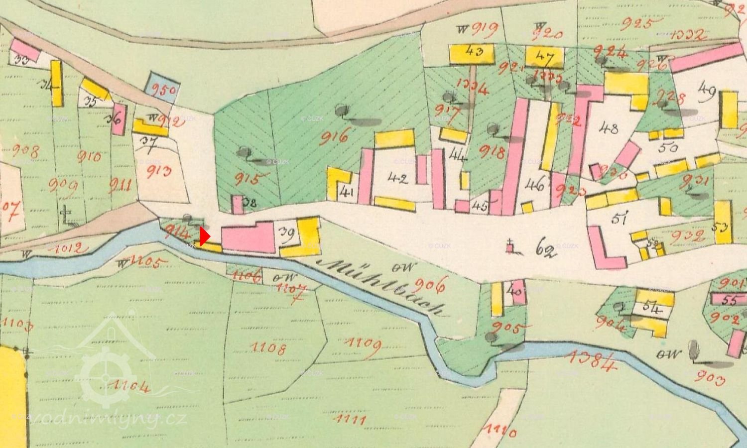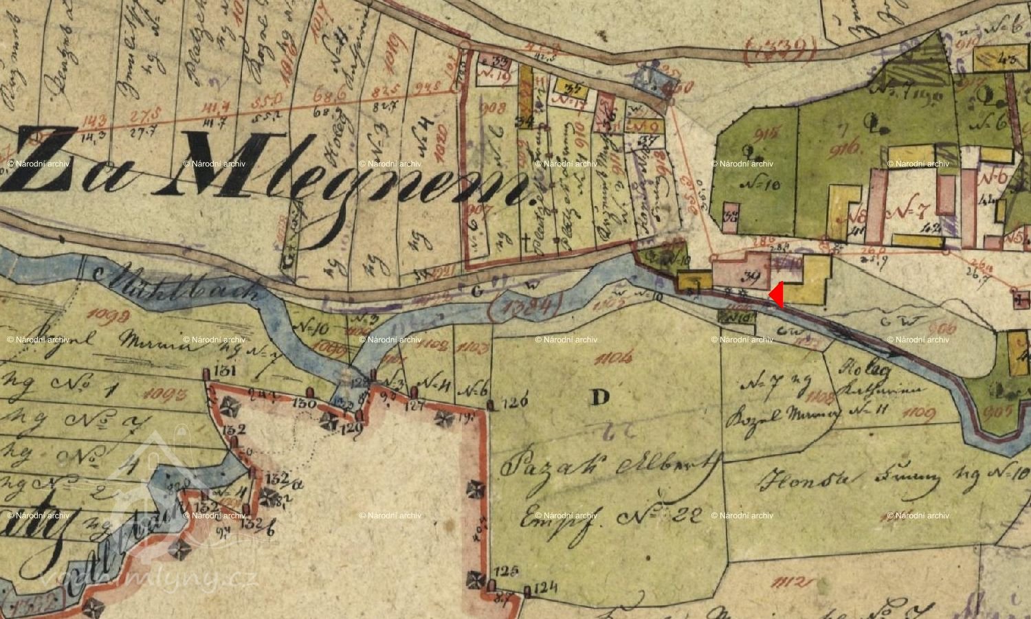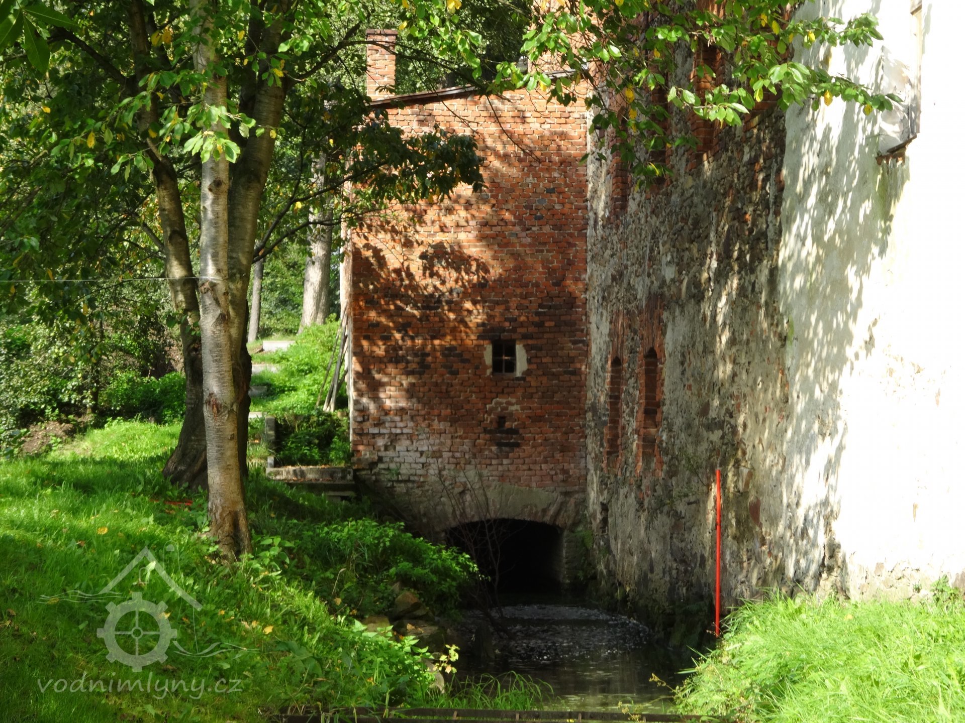 Voda šla od jezu na Bezdrvském potoce poměrně širokým korytem mlýnského náhonu až turbínovému domku. Před domkem je stavidlo do jalové strouihy a česla se stavidlem na vpouštění vody do turbínové kašny a na turbínu