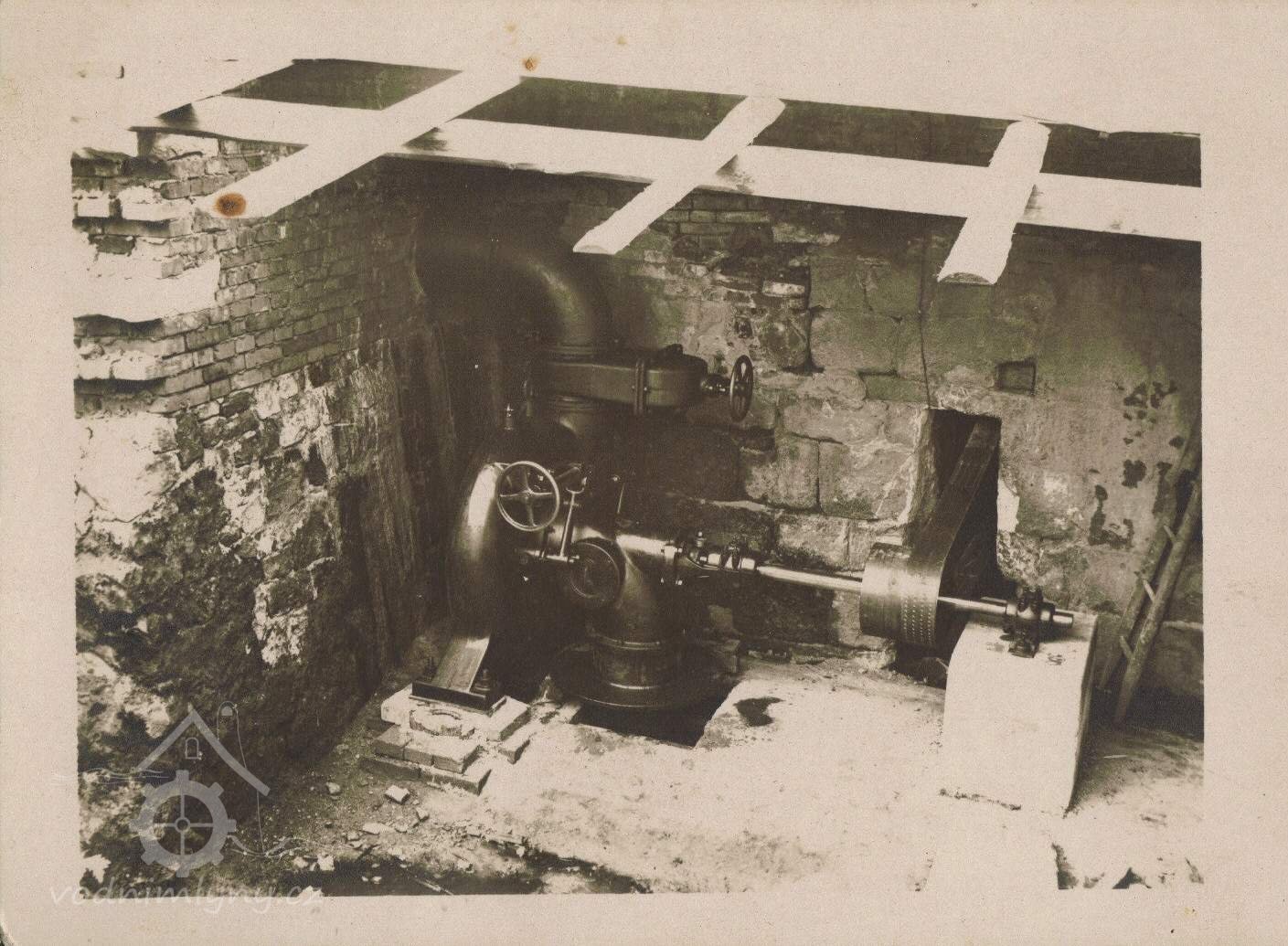 Popis1930: 1 turbína Francis, hltnost 0,175 m3/s, spád 4,5 m, výkon 8 HP