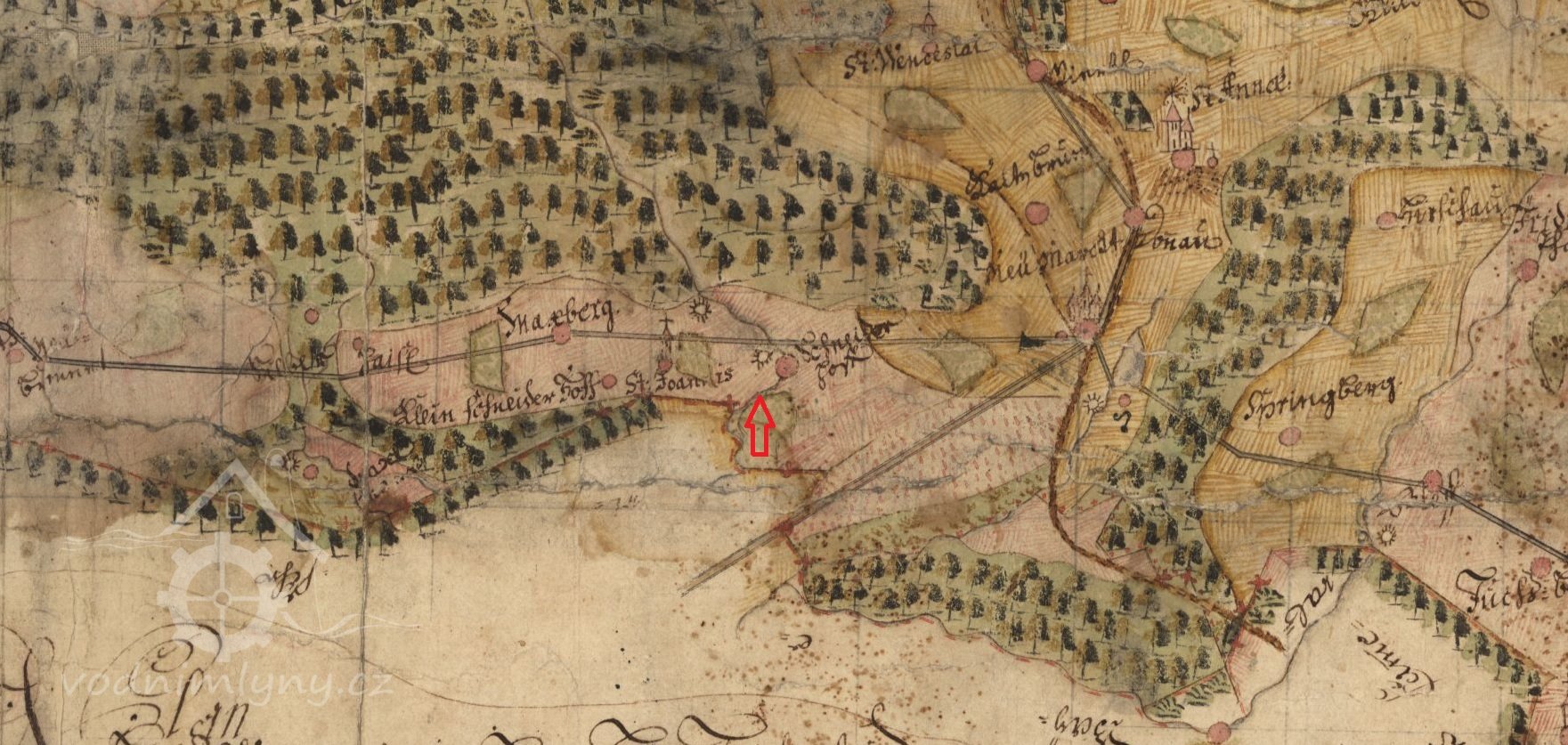 1651 Soupis poddaných podle víry: mlynář Jiří Arnet (48 let), žena Marta (42), syn Hendrich (23), všichni katolíci