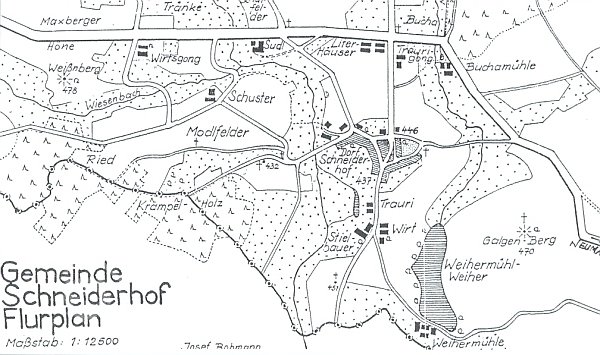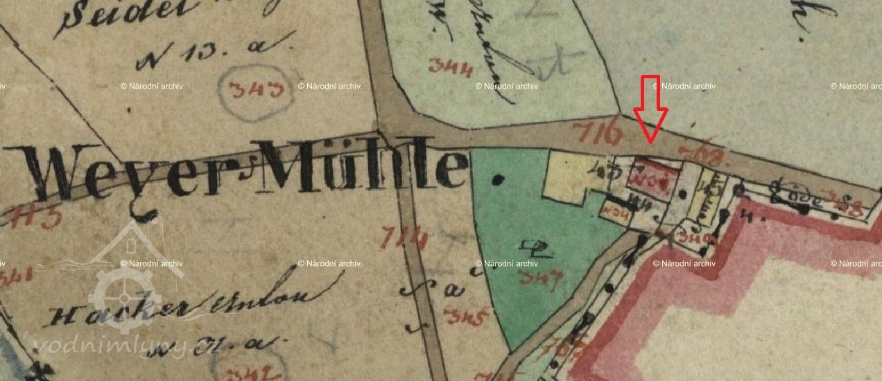 Na III. vojenském mapování jako Weihermühle. Podle sčítání obyvatel z roku 1910 pod názvem Weihermühle, mlynářem je Johann Hacker* 1880 s Marií a rodinou.