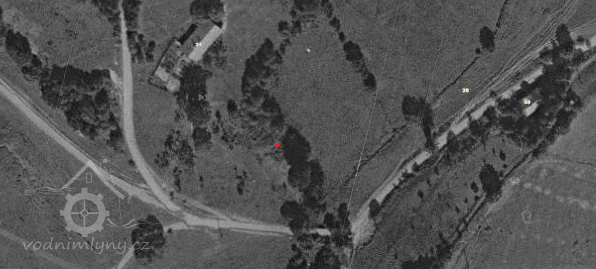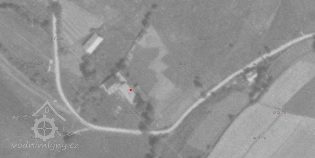 Na leteckém snímkováníz roku 1959 již po mlýnu není ani památky.