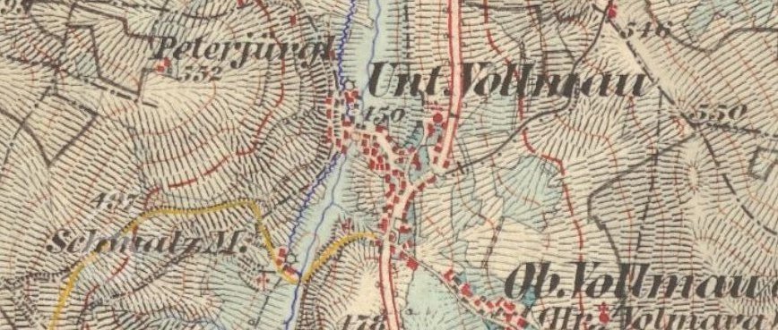 V záznamu sčítání obyvatel z roku 1869 mlynářem Franz Baumann *1823 s rodinou. Roku 1870 stále Franz Baumann, mlýn má 2 kola, u mlýna je i pila, 3 nespalné a dvě spalné budovy. Přes sčítání 1880 i v roce 1890 stejný mlynář Franz Baumann *1823 s rodinou a chasou, mj. 19 kusů dobytka, 15 ovcí.