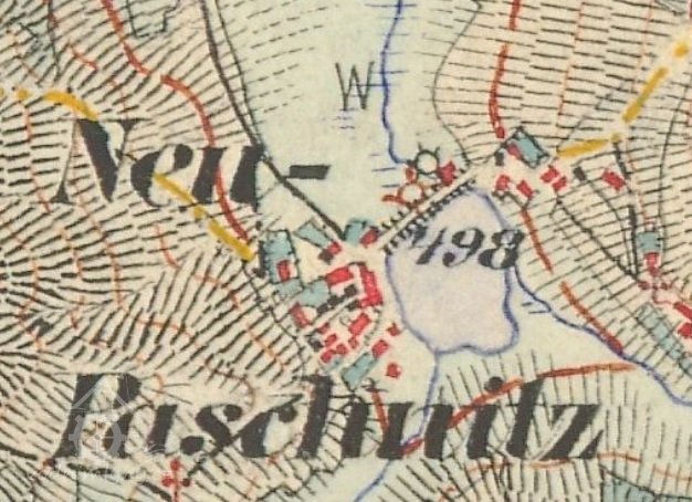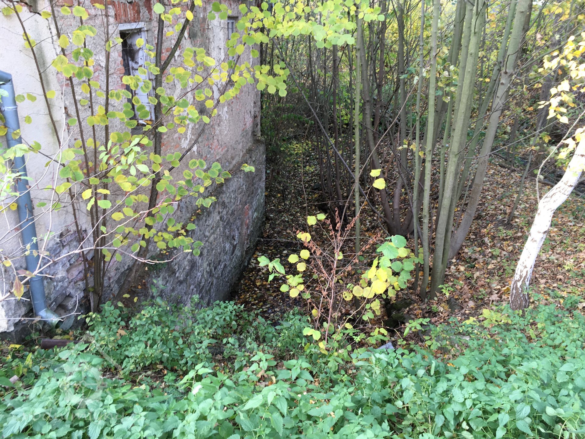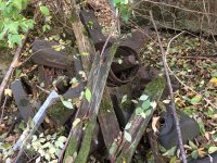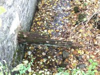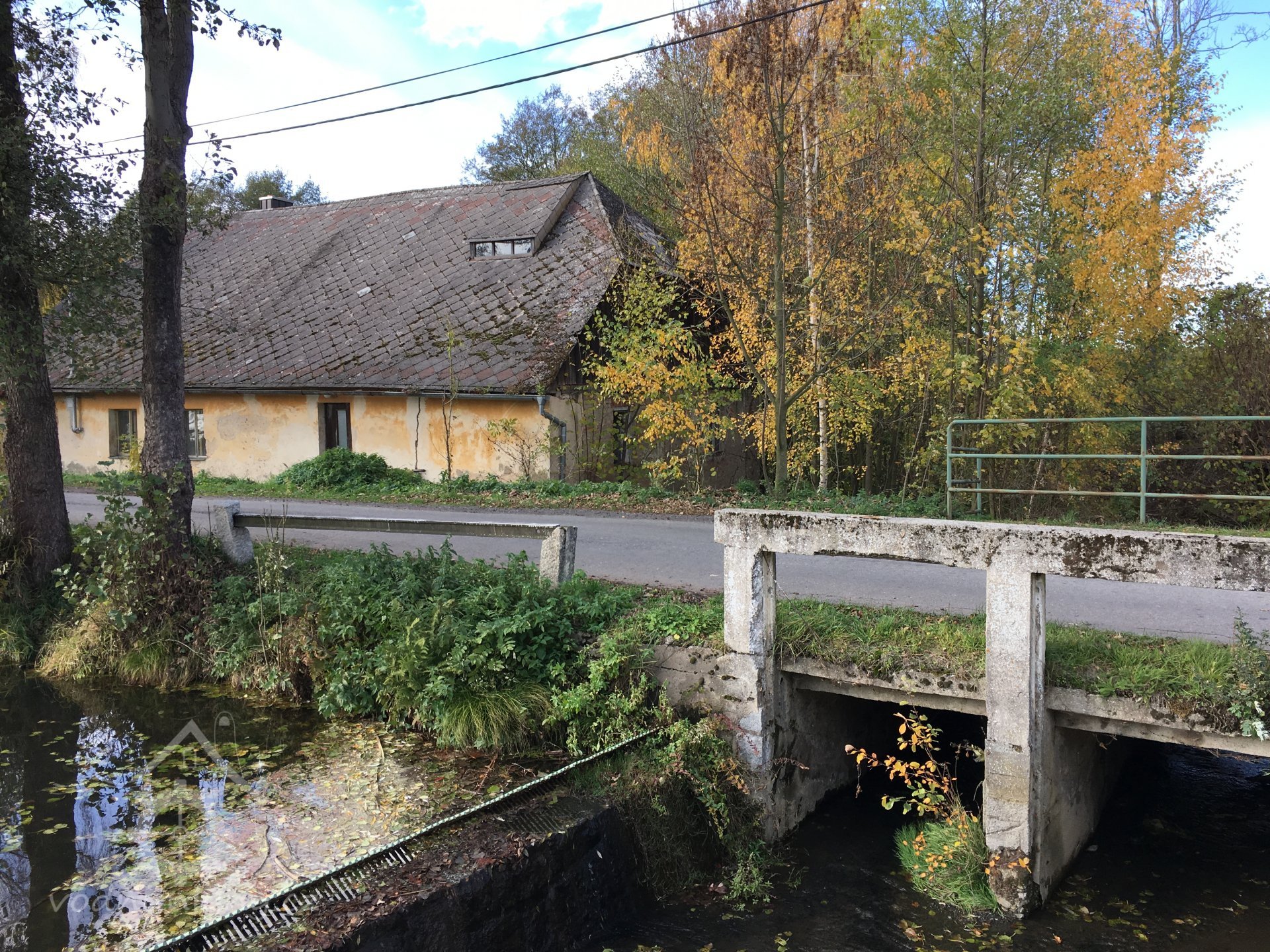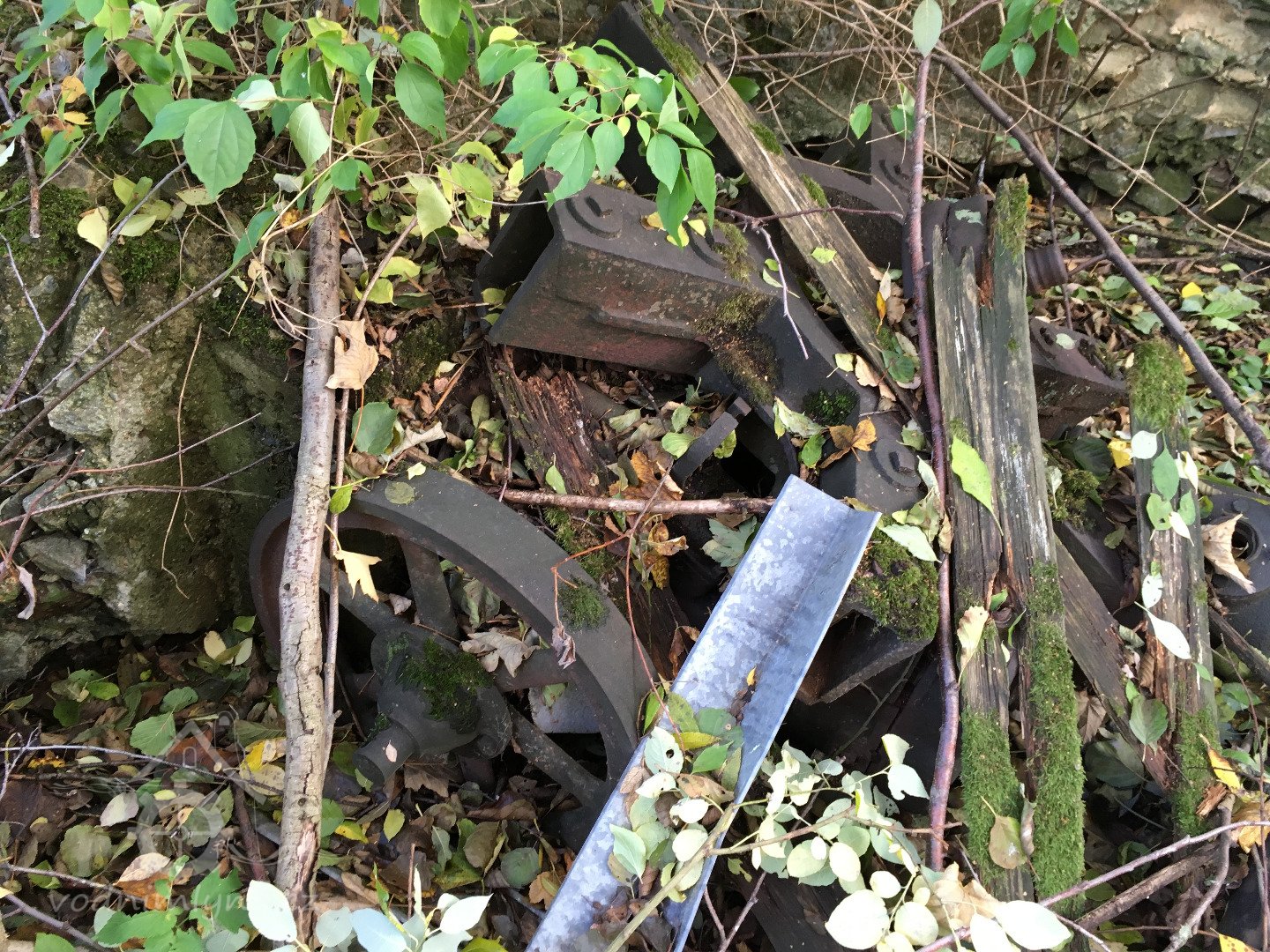 Ze tří stran poměrně zachovaná kamenná lednice na východní straně objektu s torzem dřevěné hřídele vodního kola. Odtokový kanál zasypaný. Stejně tak tok vody mezi rybníkem a lednicí není zachován. V křovinách kovové zbytky zařízení - prosím o identifikaci, poznám kolo transmise ?