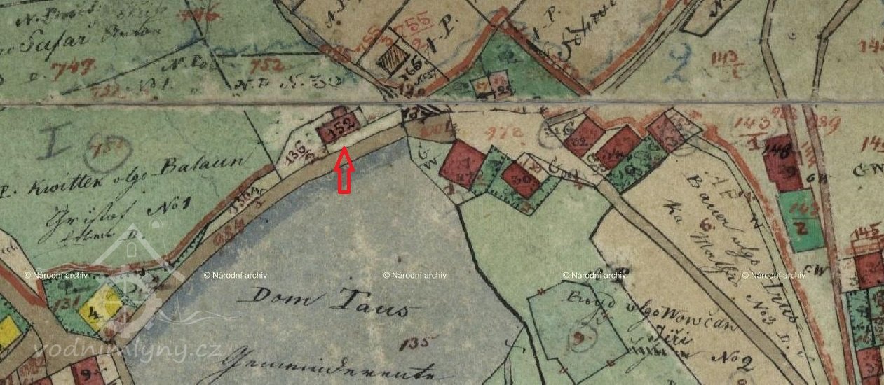 PopisV Seznamu a mapě vodních děl republiky Československé z roku 1930 je uveden mlýn,1 kolo na svrchní vodu, množství vody v m3/vt. 0,068, spád 4 m, normální výkon vodního díla 2,3 k.s. Podnikatel vodního díla: Tomáš Suchý.