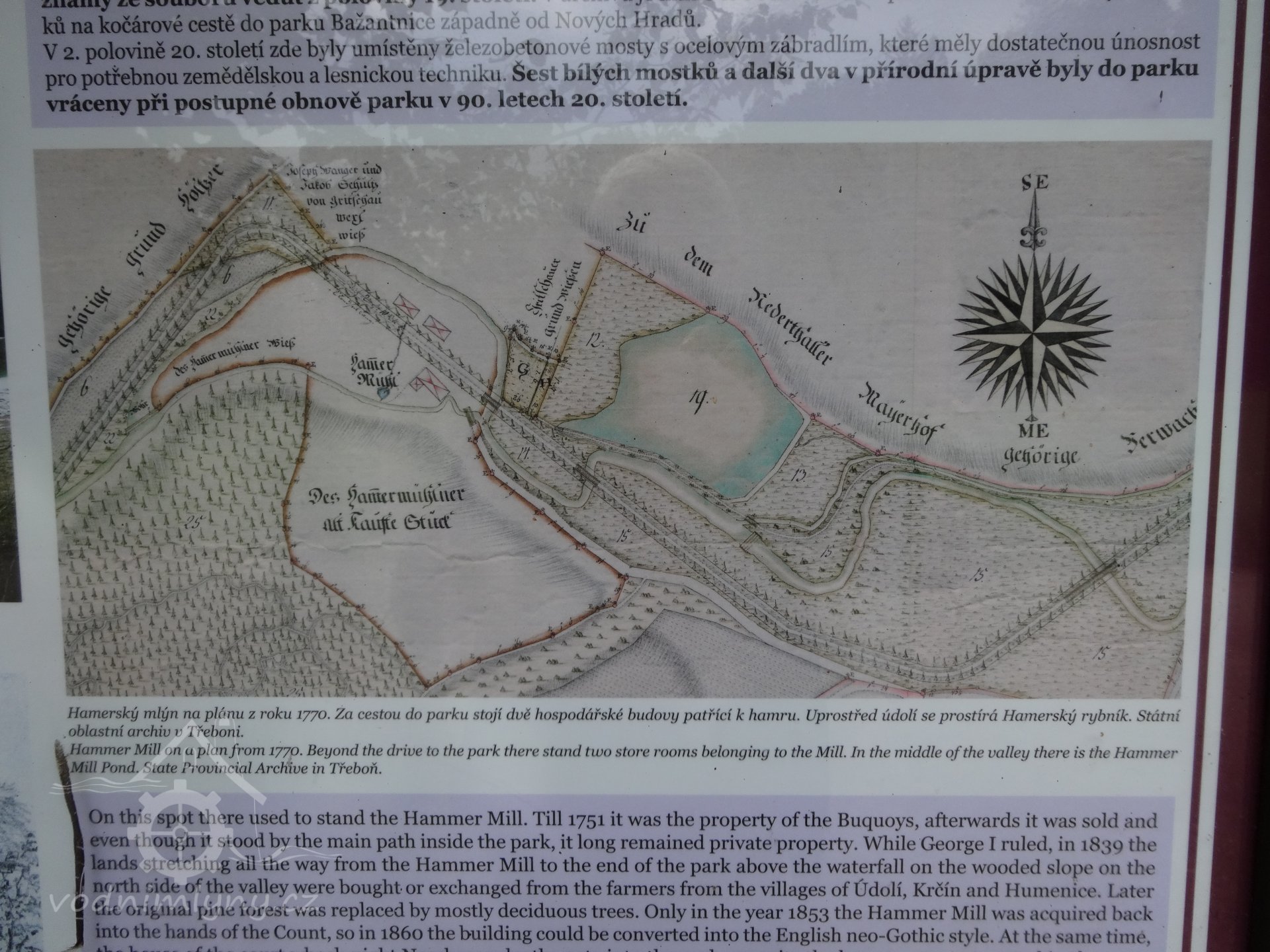 Na počátku NS Terčino údolí u Nových Hradů dojdeme k budově uváděné na infotabuli jako HAMR. Na jejím místě stál v minulosti Hamerský mlýn. Mlýn vzpomínán v r.1579. Do roku 1751 majetkem Buquoyů, poté byl prodán a přestože se nacházel při hlavní cestě uvnitř parku, zůstal dlouho soukromým majetkem. Roku 1853 se podařilo získat Hamr s pozemky zpět do panského držení, takže v roce 1860 mohla být budova upravena ve stylu anglické novogotiky. Ještě roku 1930 byl provozován šrotovník, jak uvádí Seznam vodních děl republiky Československé. V současnosti je v objektu penzion.