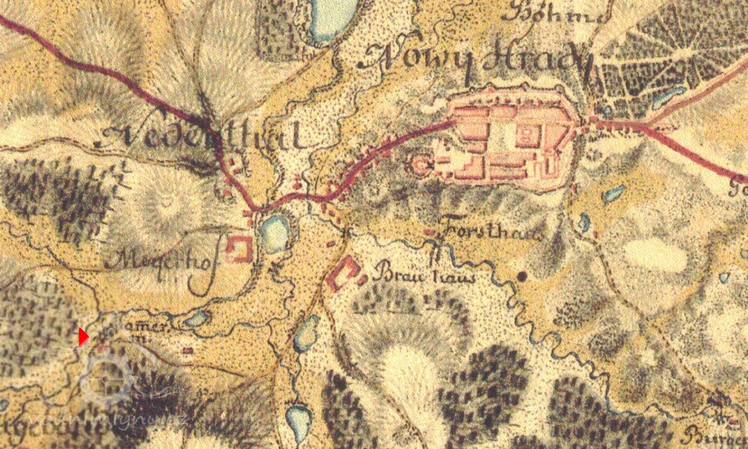 Jihozápadně od obce Údolí (něm.Niederthal)