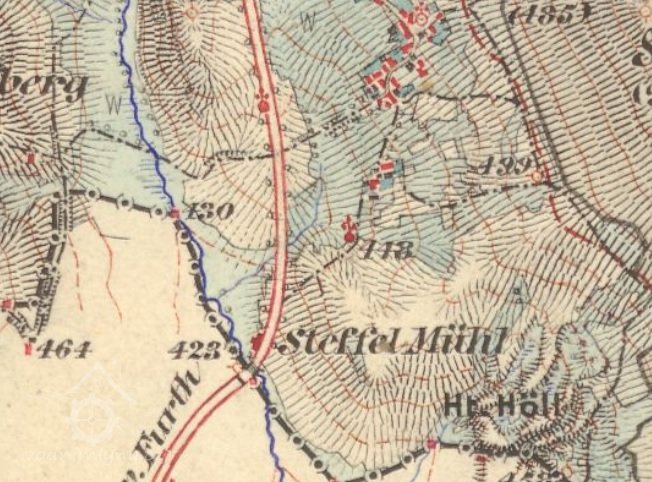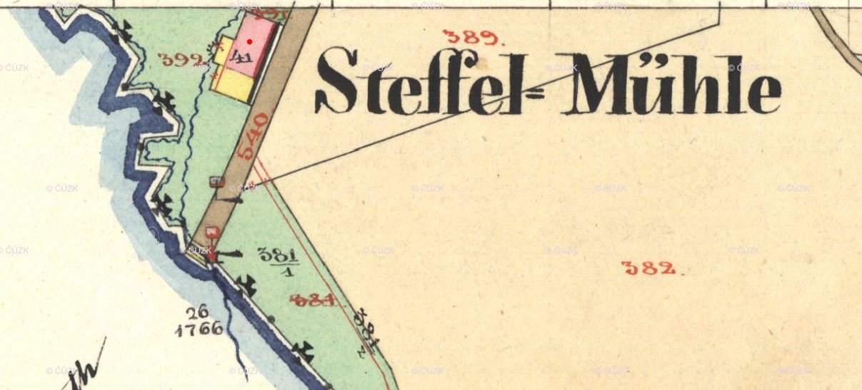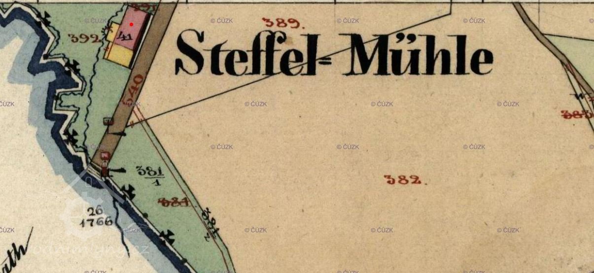 velice krátce fungující mlýn přímo u hranice, kompletně zbourán