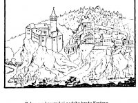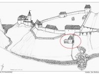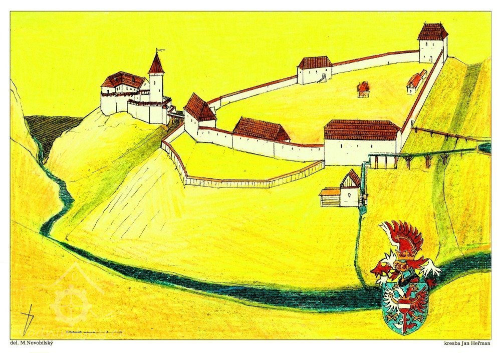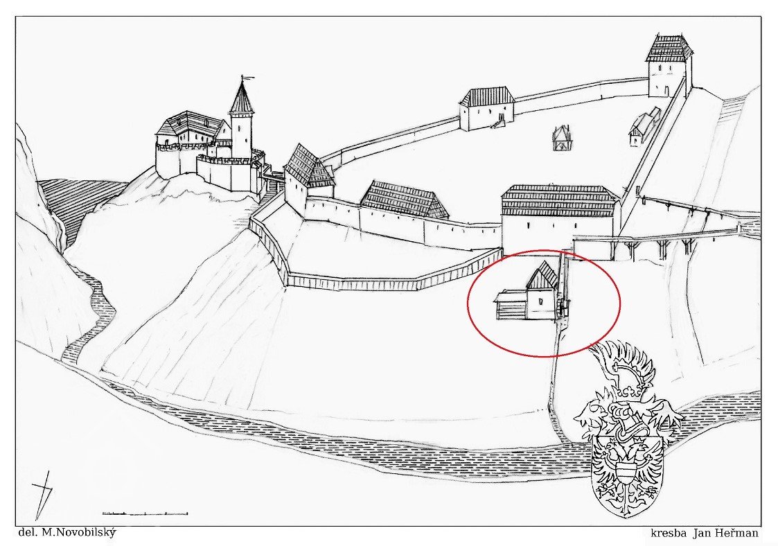 1674 na nejstarším vyobrazení hradu patrný pouze nový mlýnec, situovaný vedle baštovitého výstupku
