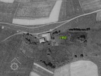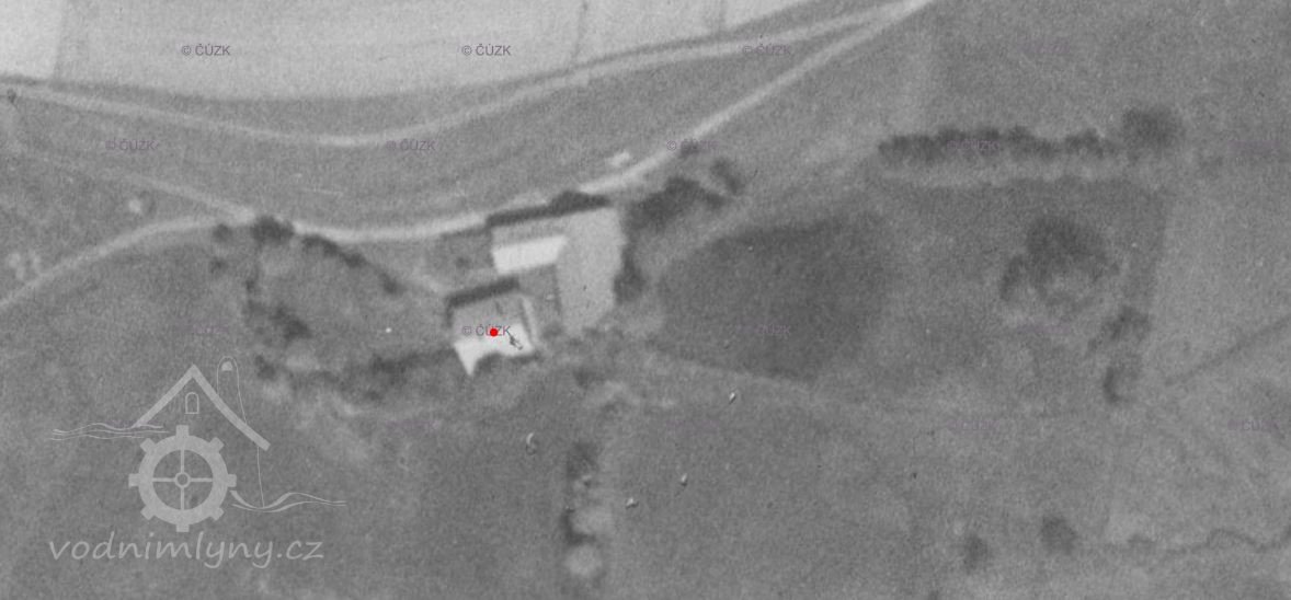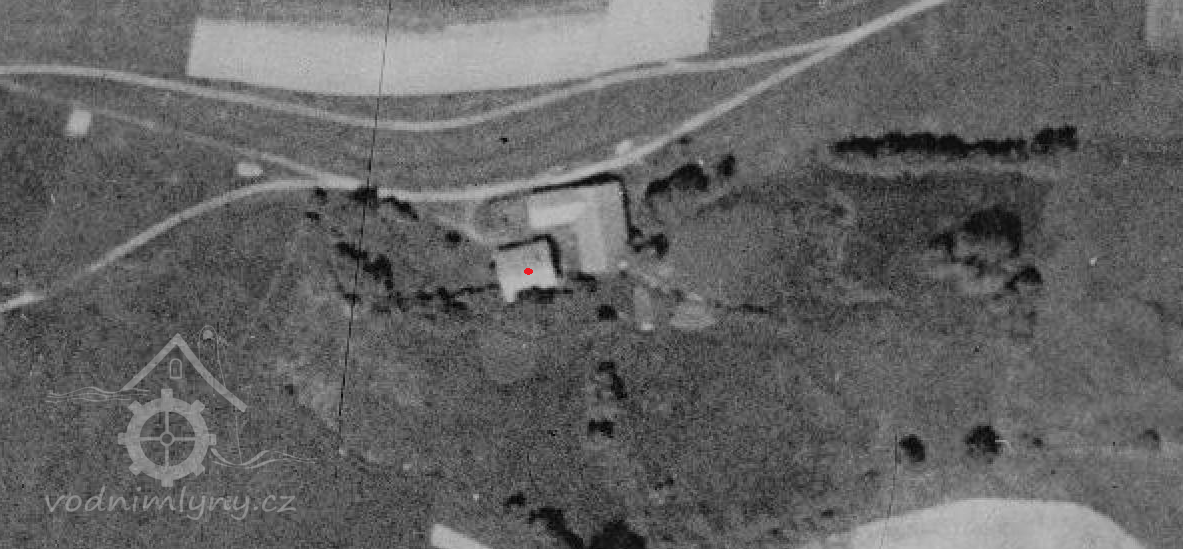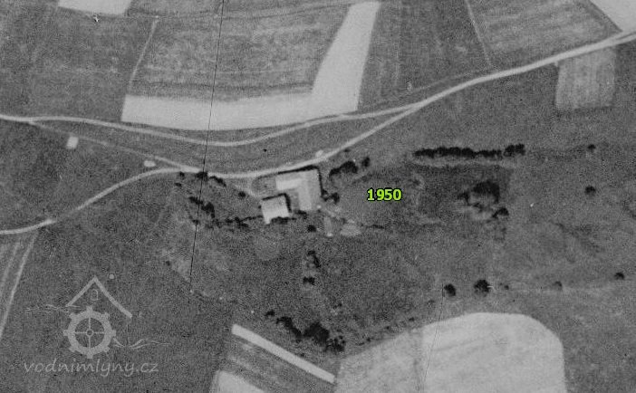 Na leteckém snímku z roku 1950 jedna větší budova do L, druhá menší. Někdy v následujícíh letech zbourán. Dnes dochovaný náznak náhonu, rybníček, na stavbu přístřešku zřejmě použity kameny z rozbořeného mlýna.