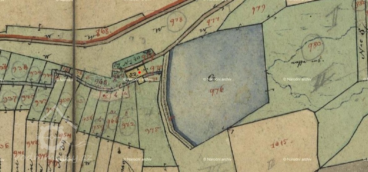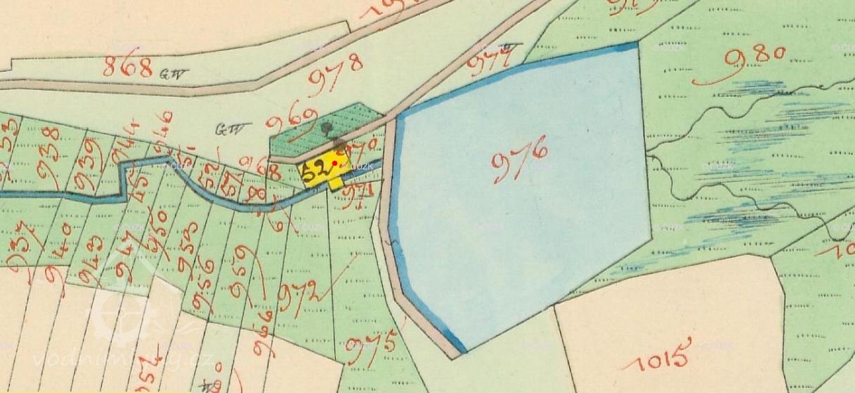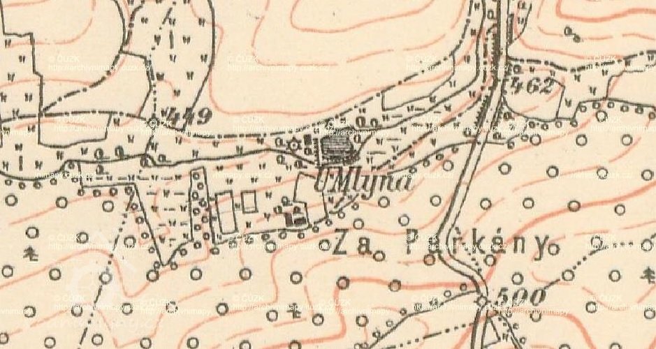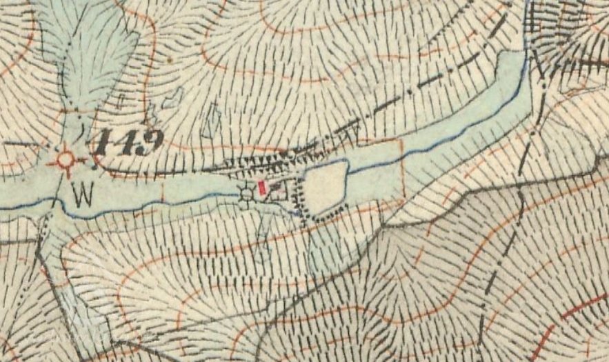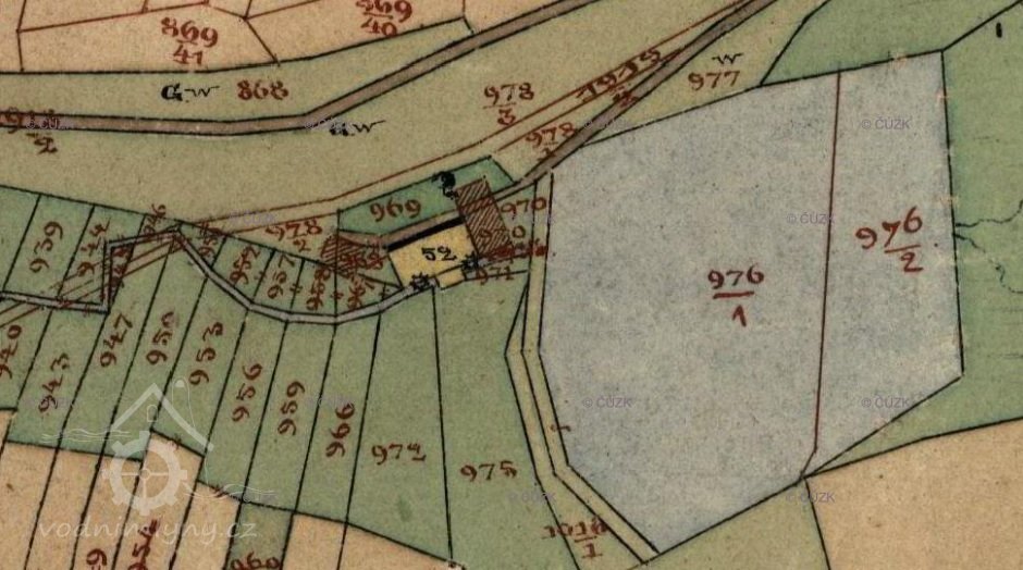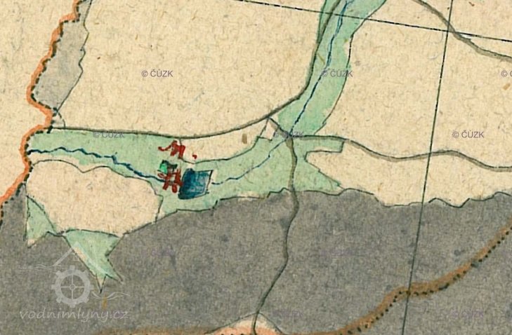 Zobrazen na II. vojenském mapování 1836-1852. Na otisku i skice stabilního katastru jedna nespalná budova , vodní kola nejsou zobrazena. Na originální mapě 1837 doplněny další dvě budovy, dvě vodní kola. Majitelem Josef Treml.