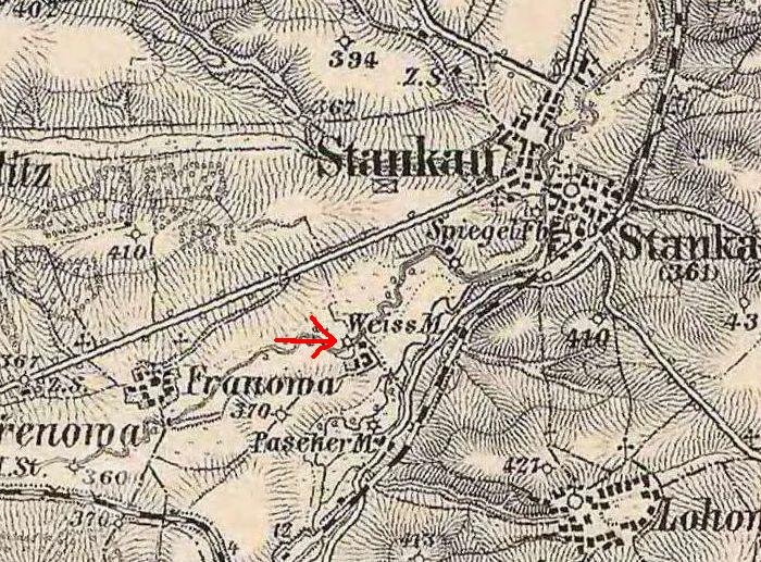 1651 Soupis poddaných podle víry: mlynář Petr Egleštiein (41 let), manželka Alena (31), syn Jiřík Egleštian (11), všichni cizopanští (poddaní hraběte z Trautmansdorfu) a katolíci