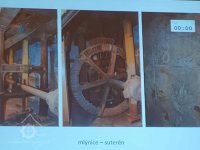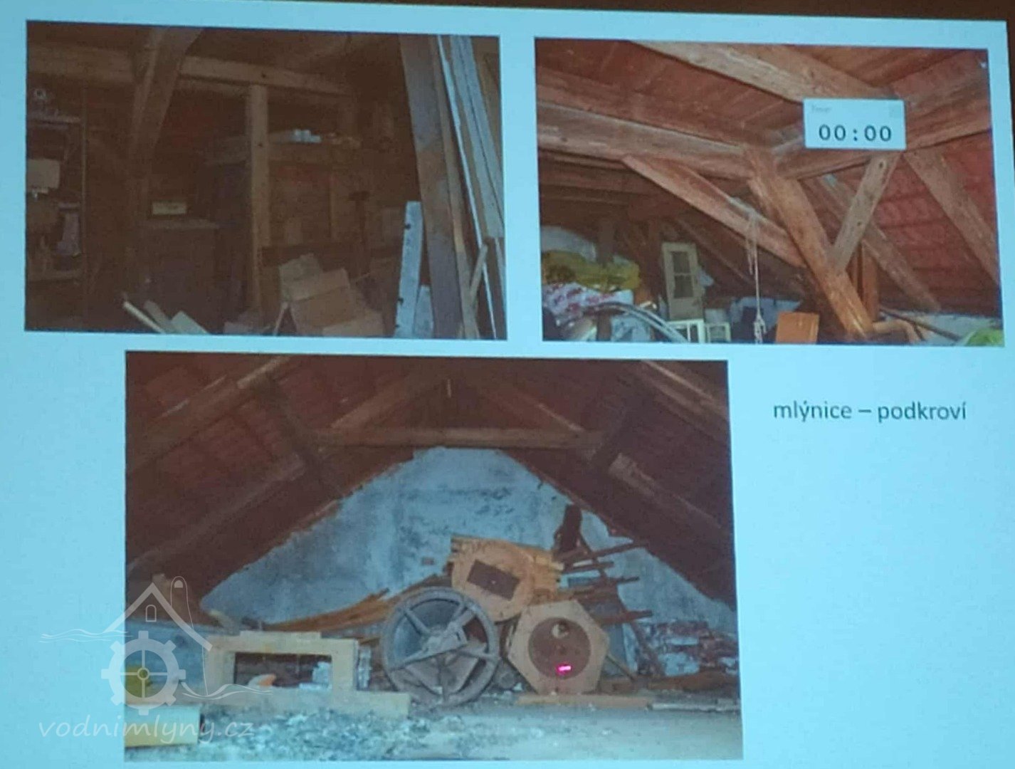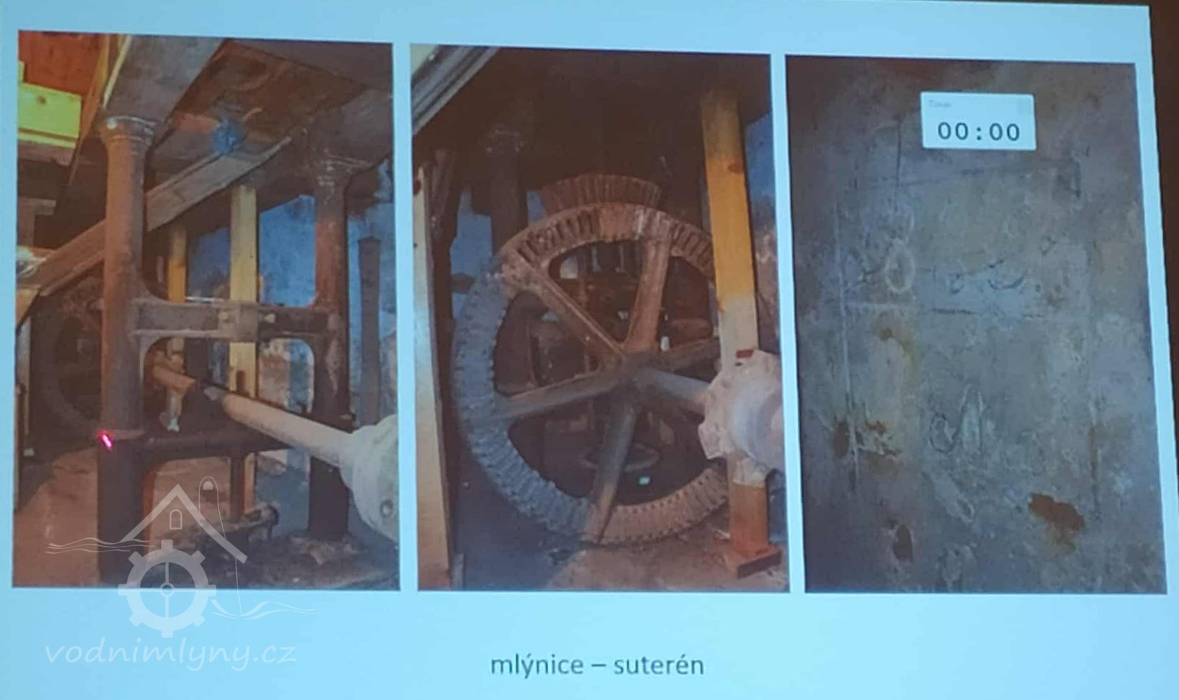 1934/35 vodní kolo na horní vodu (průměr 2,92 m, světlá šířka 2,18 m, 35 lopatek, max. 8 HP, norm. 3,8 HP, spád 3 m, 12 ot/min., spodní část se brodí)