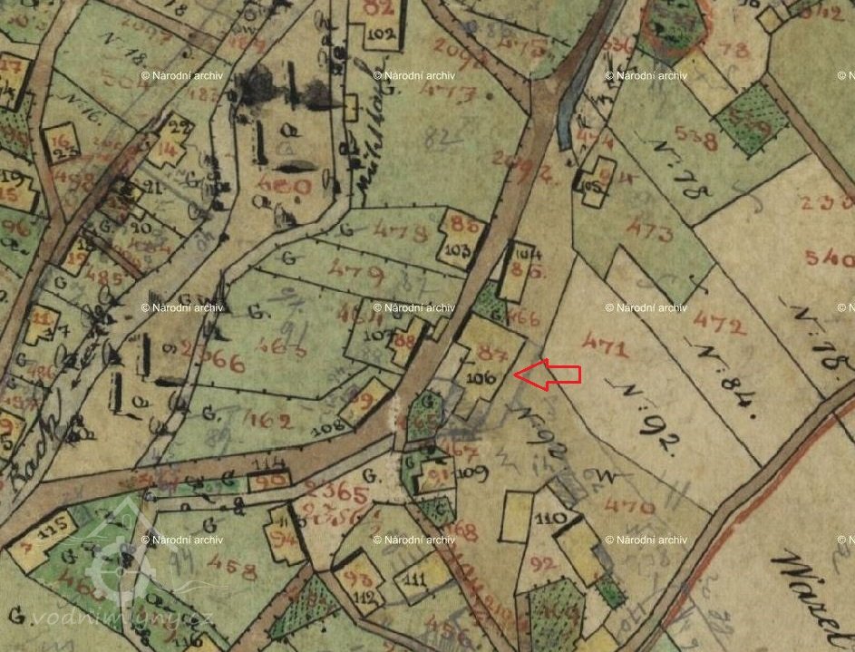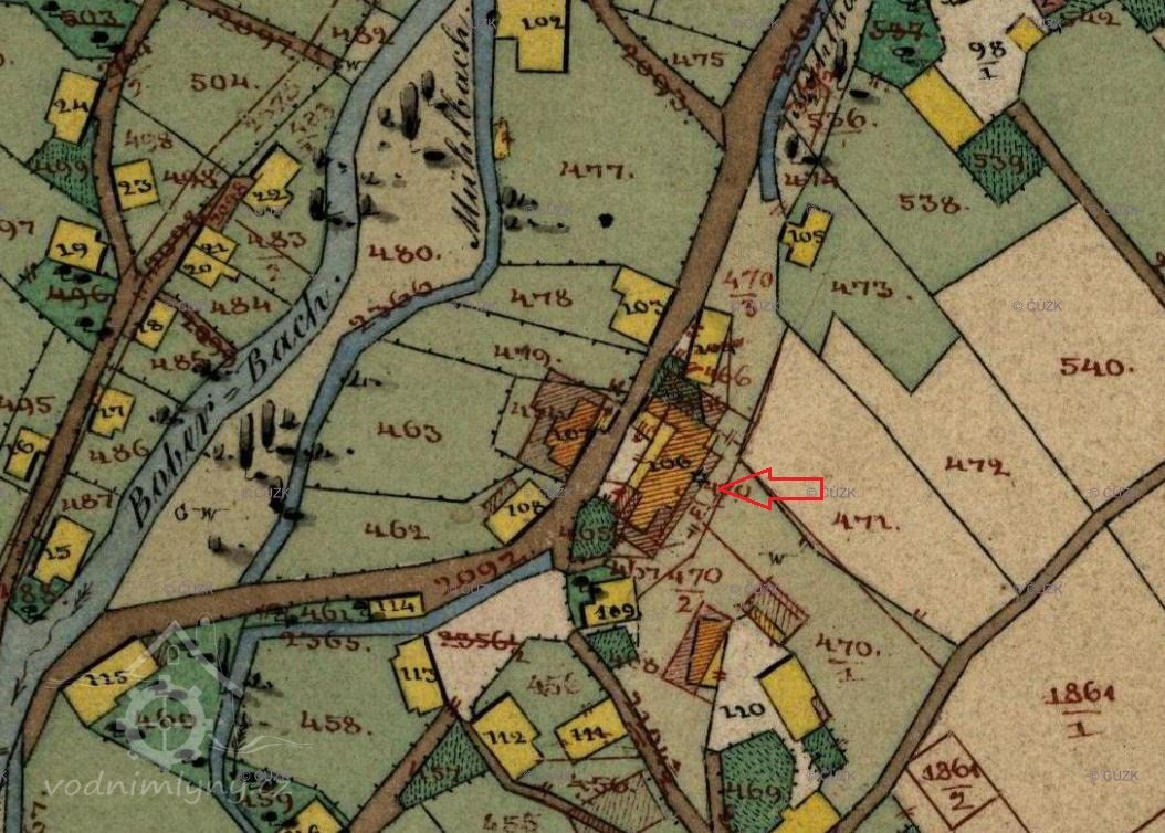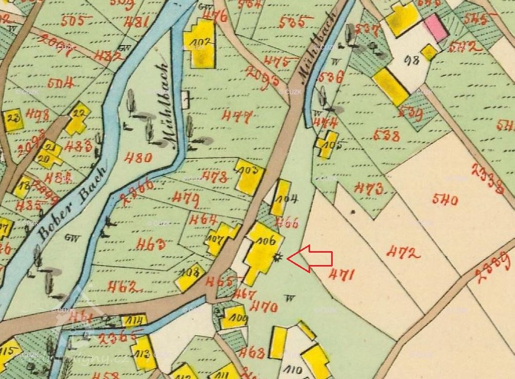 · Obere Mühle, při prvním číslování 1770/71 obdržel č. p. 63, cca 1816 - nově č. p. 87