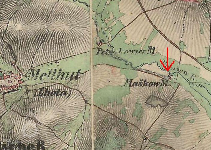 Na III. vojenském mapování je také Maškův mlýn vyznačen.
