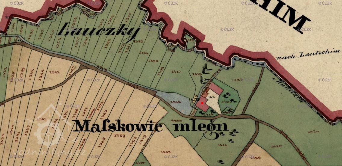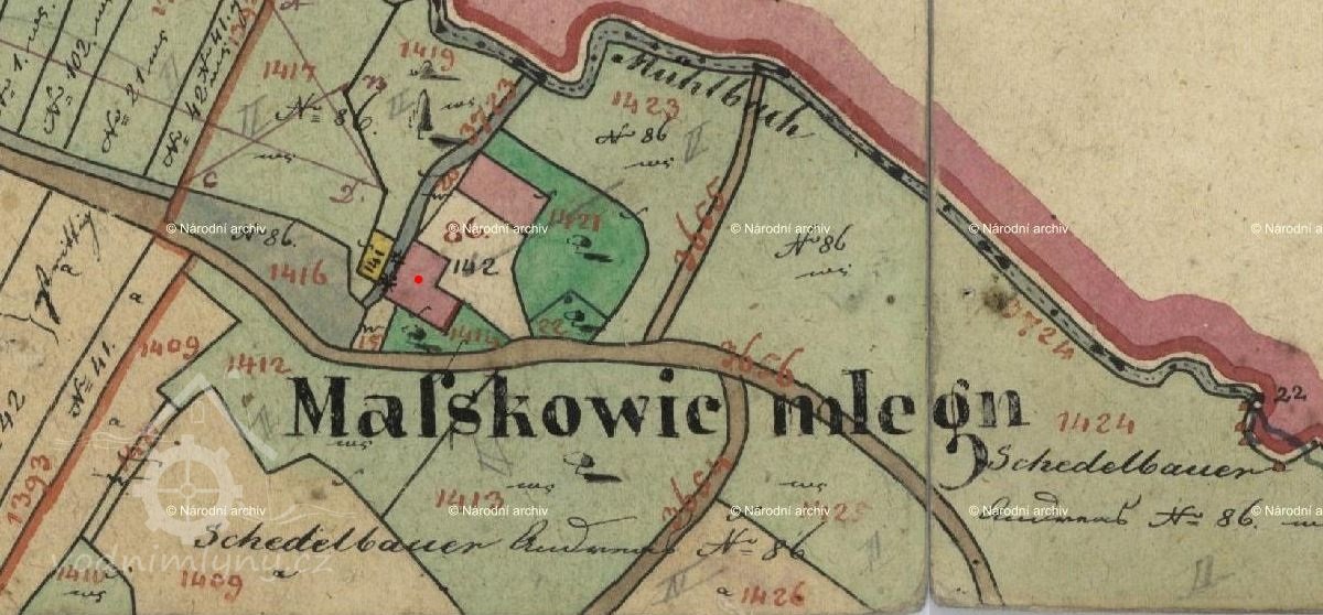 Na indikační skice z r. 1838 je jako majitel Maškova mlýna uveden Andreas Schedelbauer.