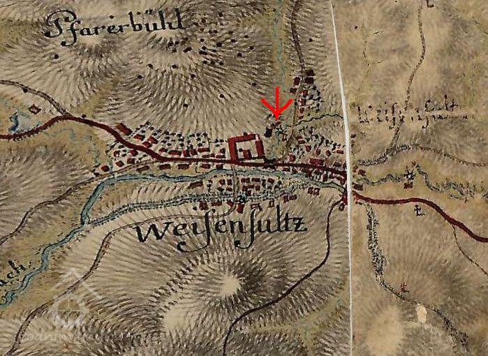 Mlýn je zakreslen již na I. vojenském mapování. Vzhledem k tomu, že severně přiléhal k zámku a jeho hospodářskému dvoru, jednalo se zřejmě o mlýn panský. Později byl pravděpodobně prodán, protože na indikační skice z roku 1838 je uveden jako majitel /a mlynář/ Karel Šperl.