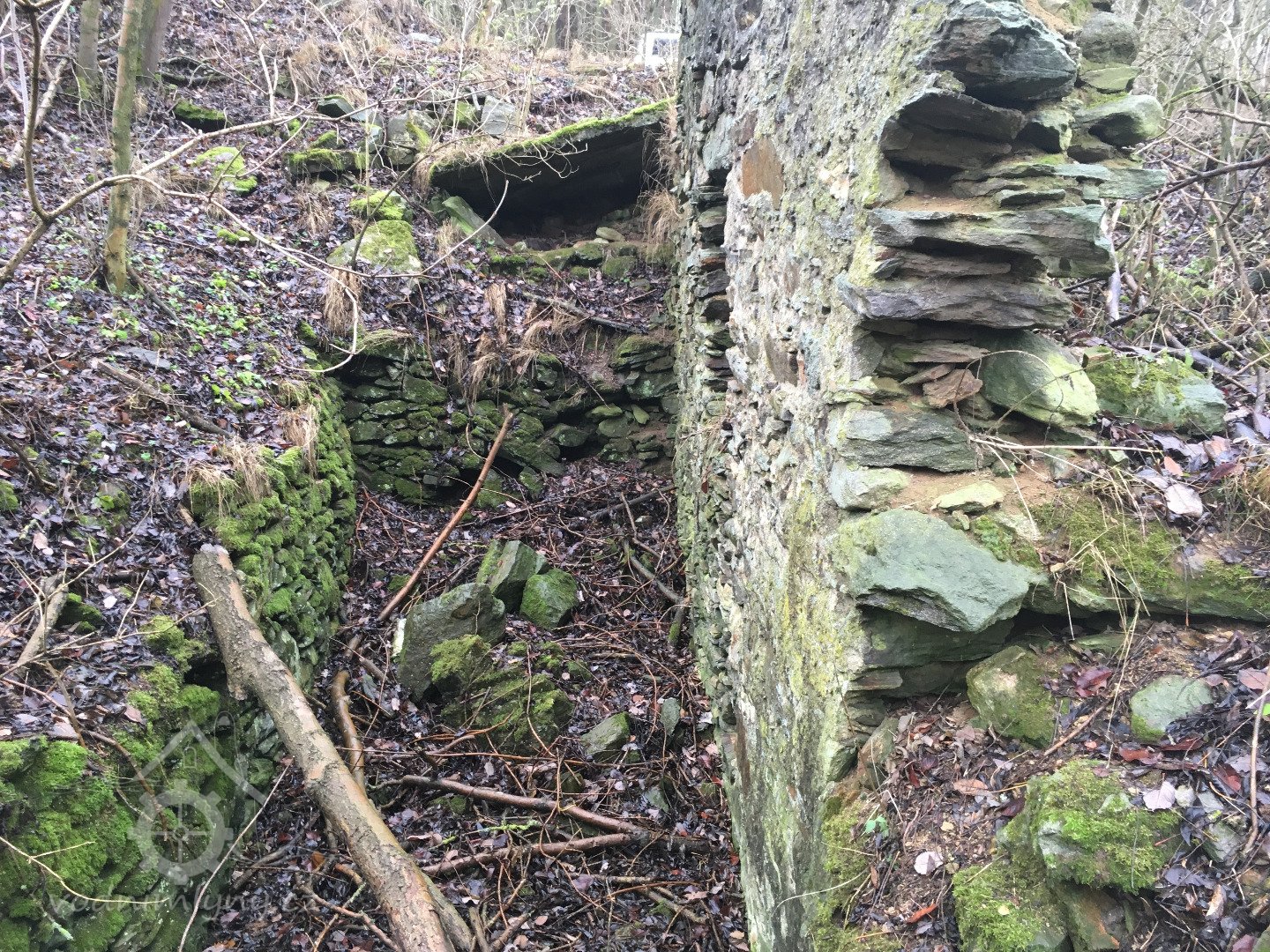 pouze zbytek jedné kamenné zdi s lednicí, náznak zasypaného náhonu, poslední část betonových vantrok a několik dalších drobných stop v náletovém lesíku