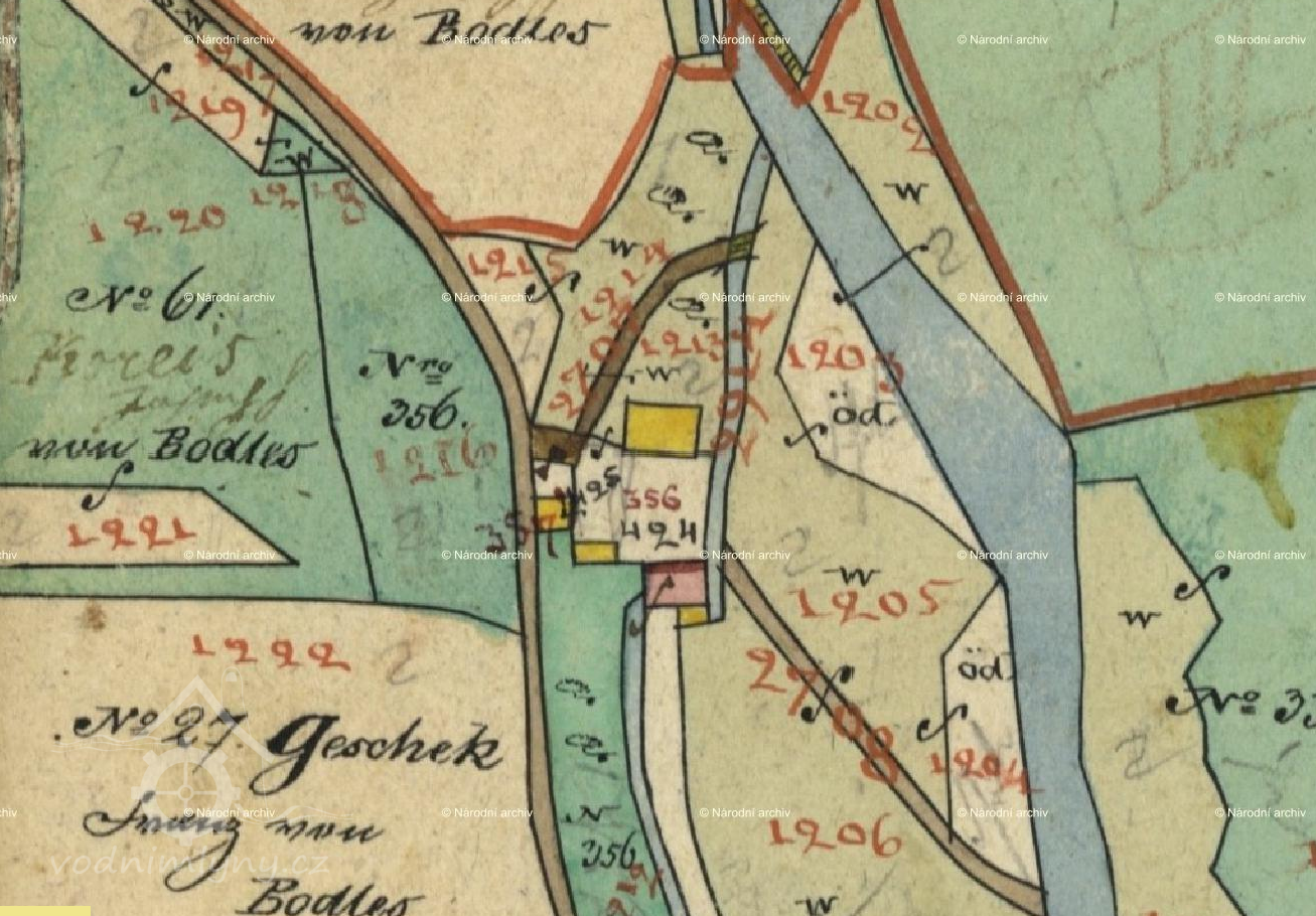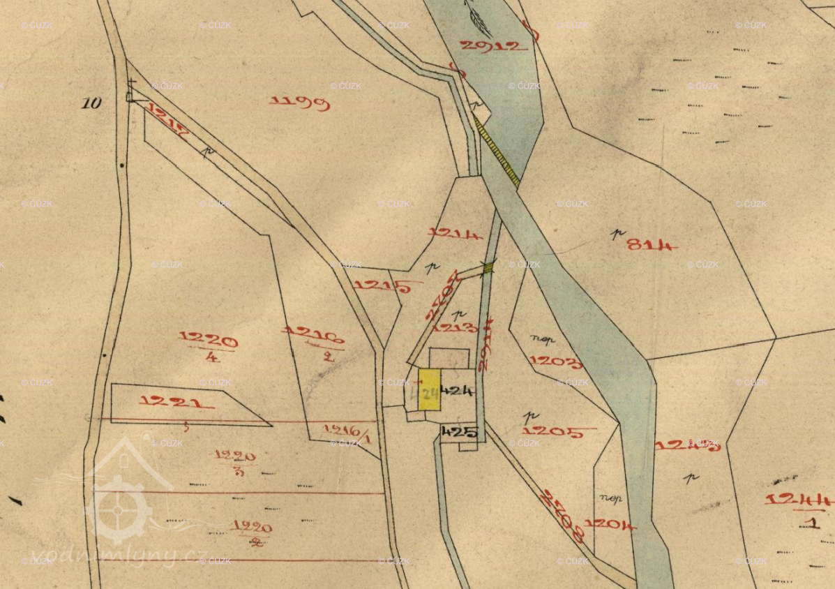 Popis1930: 1 kolo na svrchní vodu, hltnost 0,105 m/s, spád 2,6 m, výkon 2,38 HP