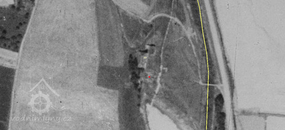 Mlýn stál jižně od současné stavby, viz umístění mapové značky. Dnešní chata je buď přestavěná hospodářská budova nebo novostavba z druhé poloviny 20. století. (RŠ)