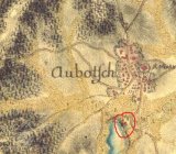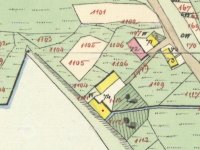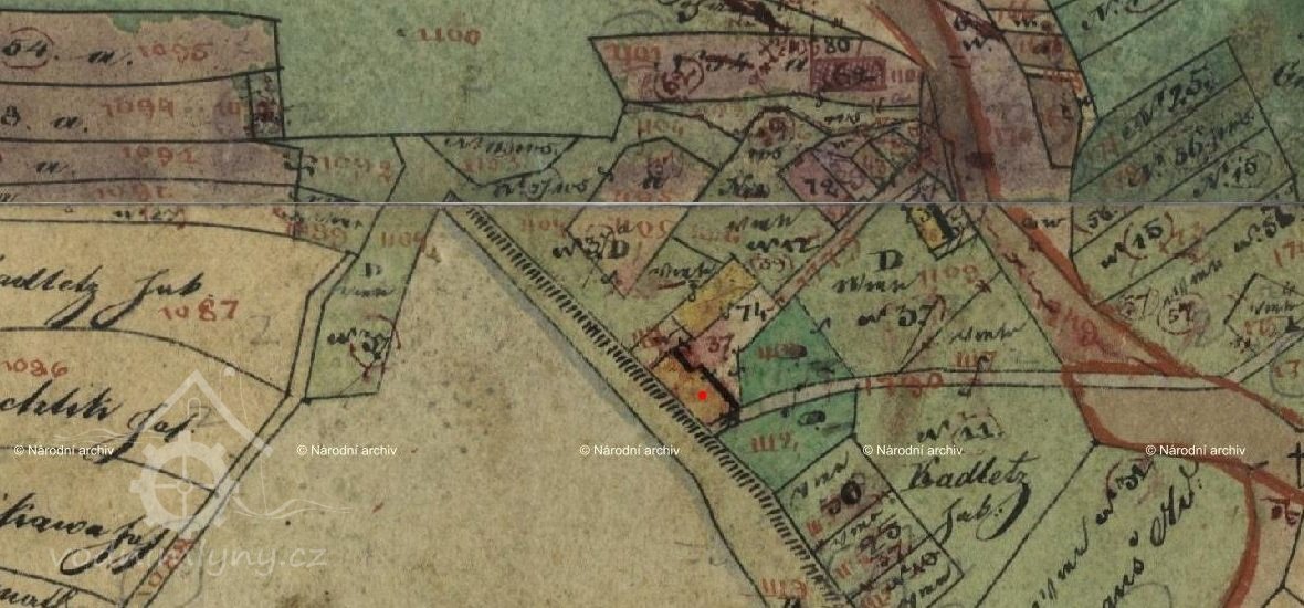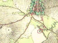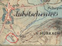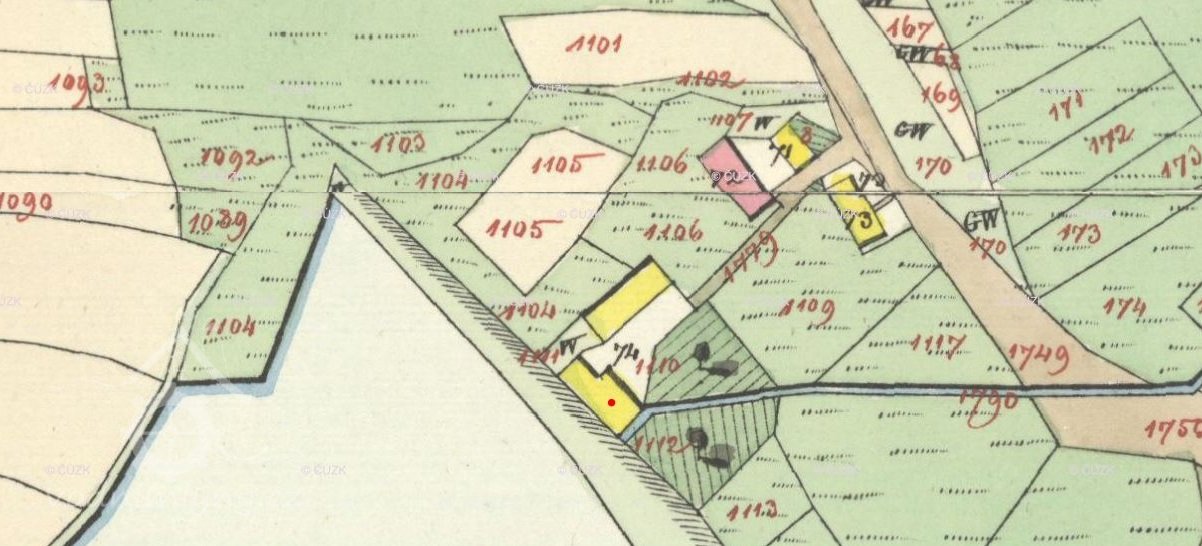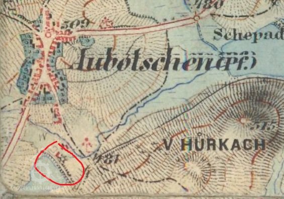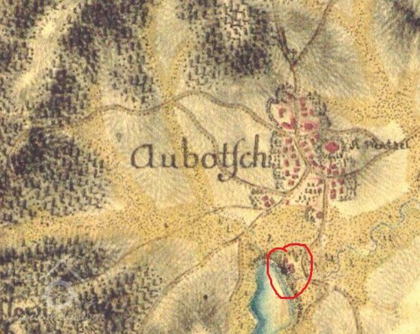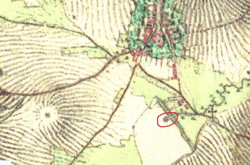 Zobrazen již na I. Vojenském mapování 1764-1768 a 1780-1783, následně i na II. a III., vždy bez jména. Skica stabilního katastru – spalná budova, 1 kolo, rybník, další spalná budova. Otisk z roku 1837 – dvě spalné budovy.