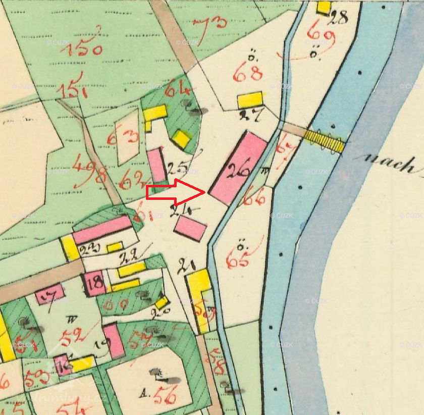 Mlýn stál v 19. století o něco níže po proudu náhonu. (RŠ)