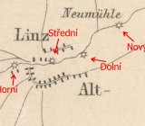 Asi okolo roku 1900 došlo z důvodů záplav k úpravě, přemístění koryta Mlýneckého potoka. Původně tekl potok okolo Dolního mlýna, ale po úpravě se potok ocitl asi padesát metrů vzdálený. Pro potřeby mlýna bylo ponecháno staré koryto a od mlýna byl vybudován asi 120 metrů dlouhý podzemní kanál.