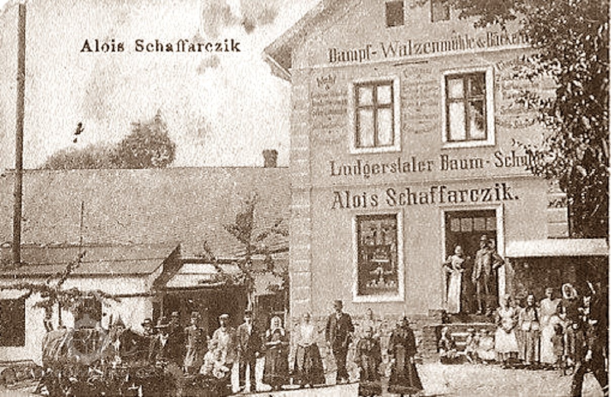 Původně Honyšův mlýn začal provoz někdy ve 2. polovině 19. století. Dcera majitele mlýna si vzala za muže Aloise Schaffarczika, který se stal provozovatelem mlýna v roce 1900. Původně to byl vodní mlýn, počátkem 20. století měl i pohon parním strojem, přibyla pekárna obchod a zahradnictví. Alois Scaffarczik se snažil své podnikání rozšiřovat a řadu let pobýval v Americe.