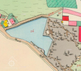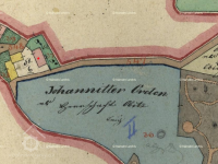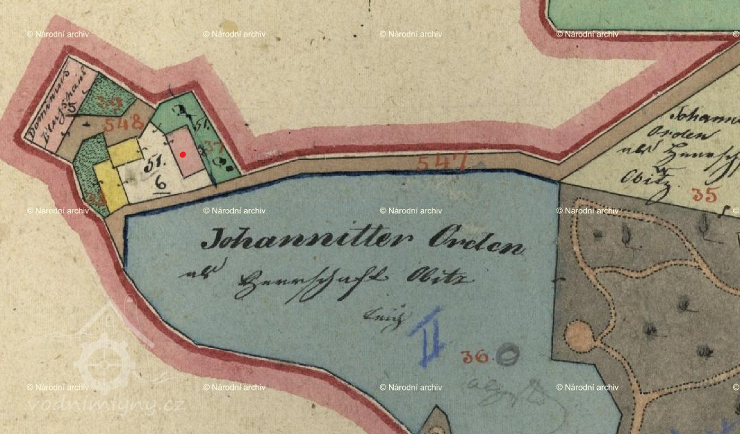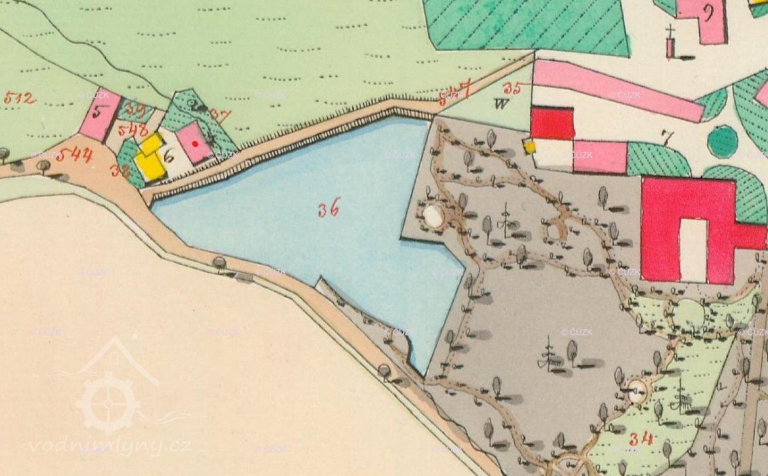 Mlýn se nacházel západně od zámku na hrázi rybníka