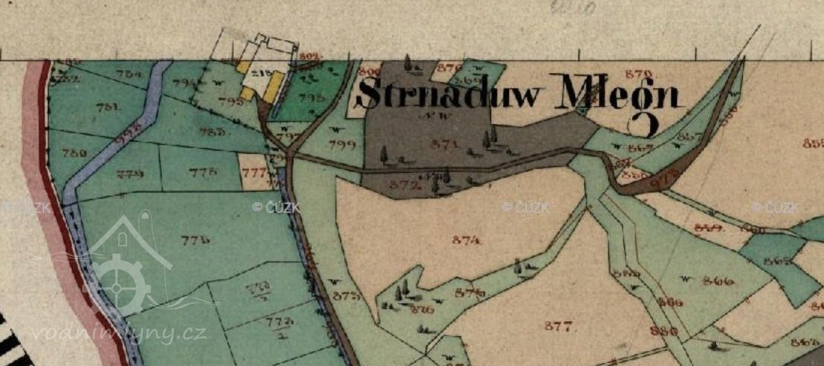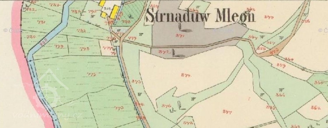 V zápise z let 1666 – 1671 se píše: Šimon Strnad (umřel), nyní Matěj Strnad (č.153), mlýn měl 1 potah, 10 str. polí, r. 1665 „pohořelý“, ale nyní má 2 potahy a 2 krávy, ale mlýn shořel, nyní jenom tam tříslo tlukou.