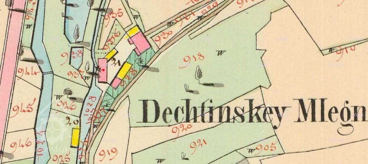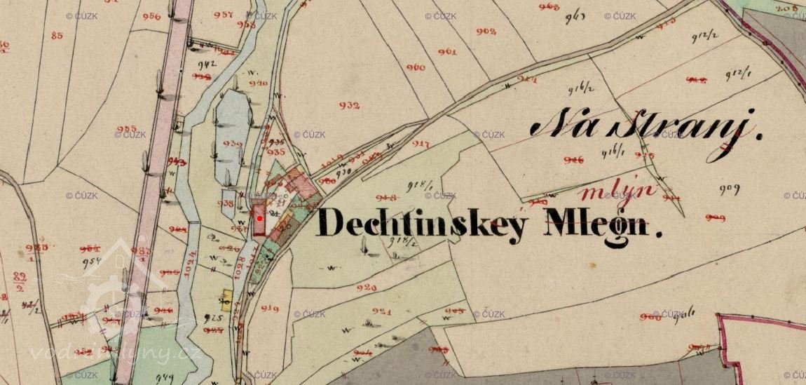 Zobrazován na mapách I. vojenského mapování. Nad mlýnem se nacházel rybník.