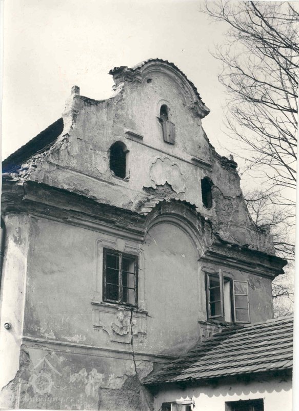 Též brána možná byla stylová a dávno zrušena. Mlýn, budova barokní se zaoblenými nárožími, mlýnice a obytné světnice pod jednou střechou byly. Je situován dle svět. stran , průčelím hlav. a branou - vjezdem k západu k silnici, druhý zdobný štít je na východ, fronta do dvora patrová, s výzdobou oken k jihu a fronta severní, kde býval náhon a mlýn. kolo, neozdobná.