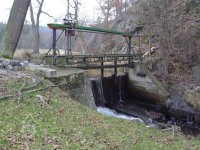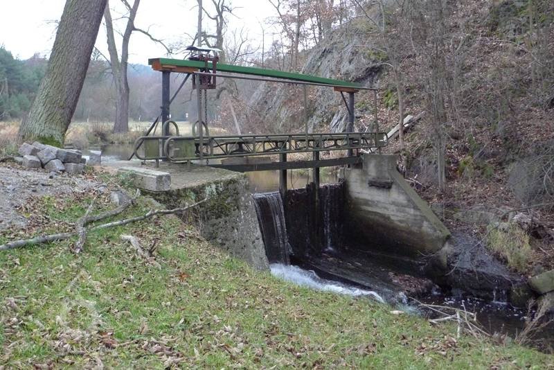Nad mlýnem stojí nevelká akumulační nádrž, z níž na severním konci odtékala přebytečná voda přes stavidla. Voda do vantrok, a posléze na vodní kolo, tekla stavidlem na jižním konci hráze. Celé vodní dílo se dodnes zachovalo, jen už se nevyužívá.