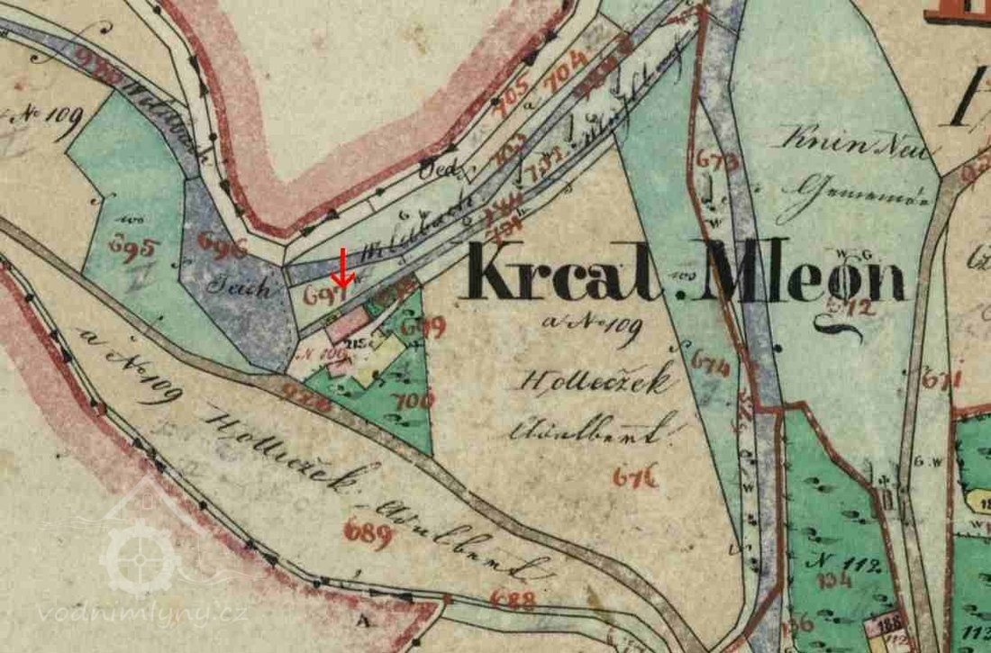 1704 Anna Šebková, platí 3/16 zl., mlýn Krcál o 1 složení s 1 kolem. Mlýn je bez vody a samou sijí mezi lidmi se živí.