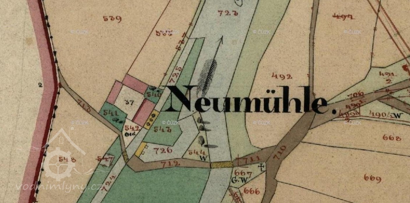 Mlýn zobrazen již na I. vojenském mapování. Dnes je ve mlýně vybudována MVE.