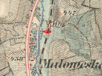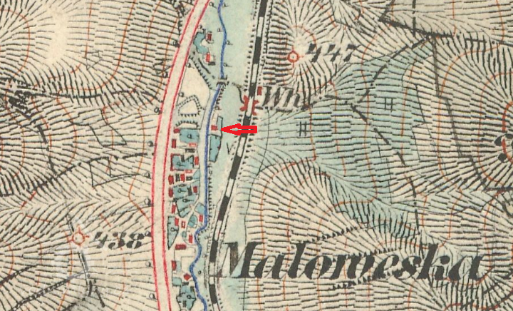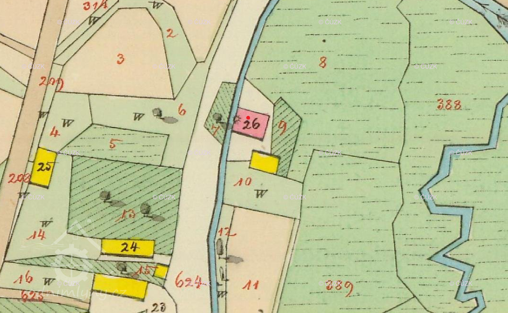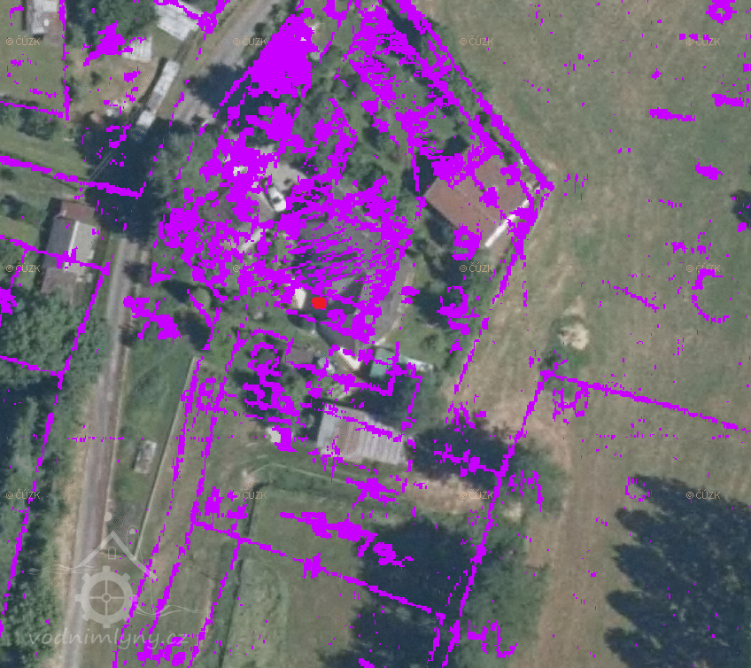 Bývalý mlýn ležel v místech novostavby. Dle leteckého snímkování z roku 1949 lze usoudit, že se jednalo o poměrně velký komplex.